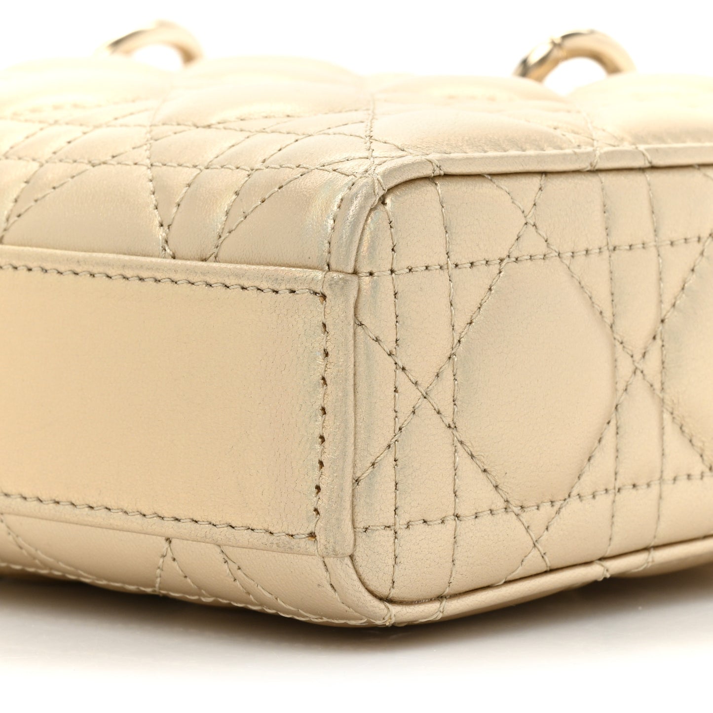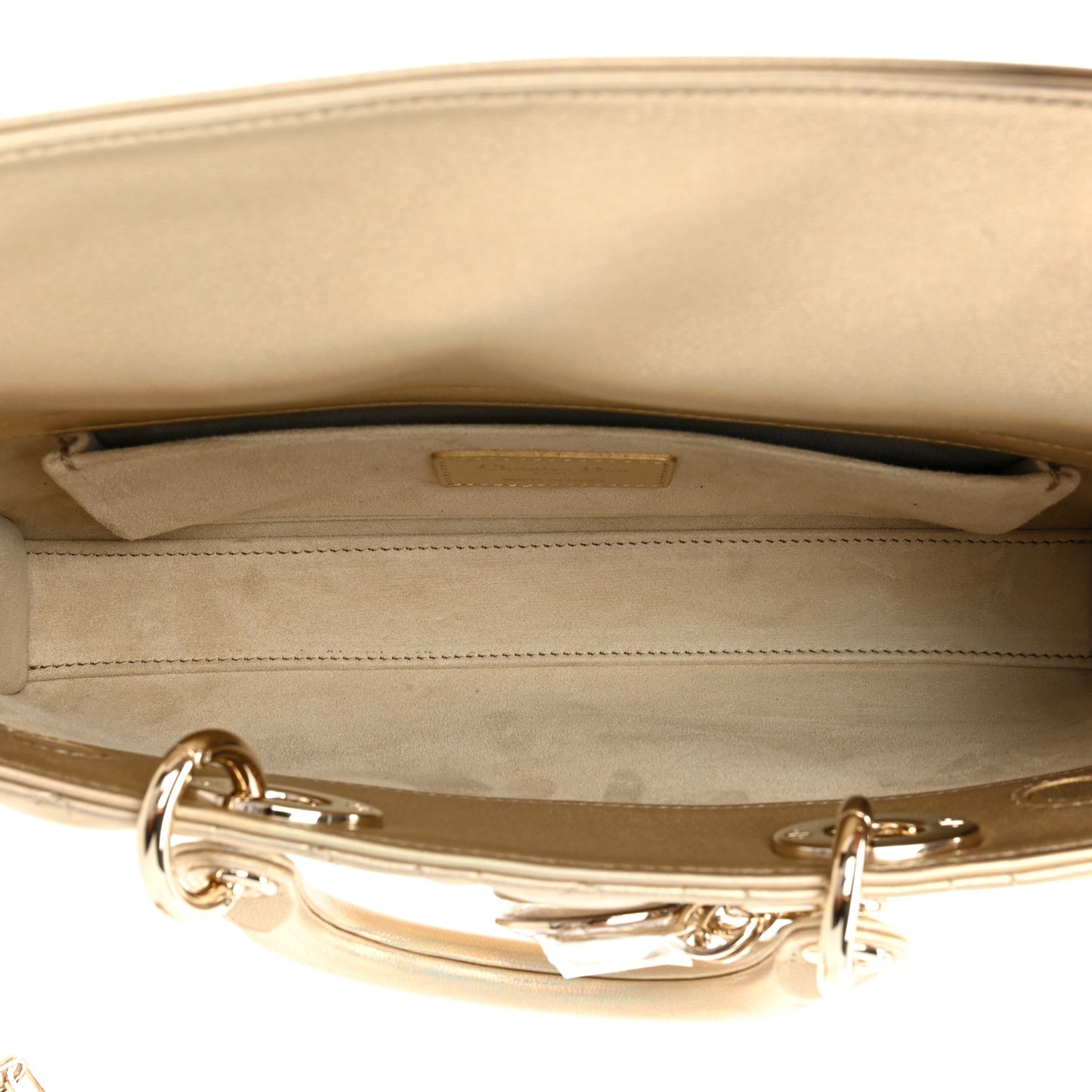 Metallic Lambskin Cannage Medium Lady D-Joy Or