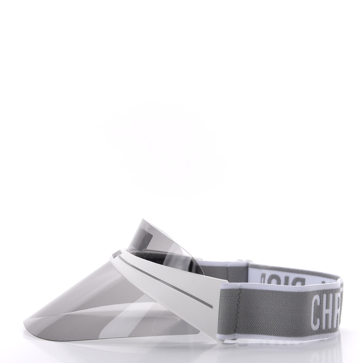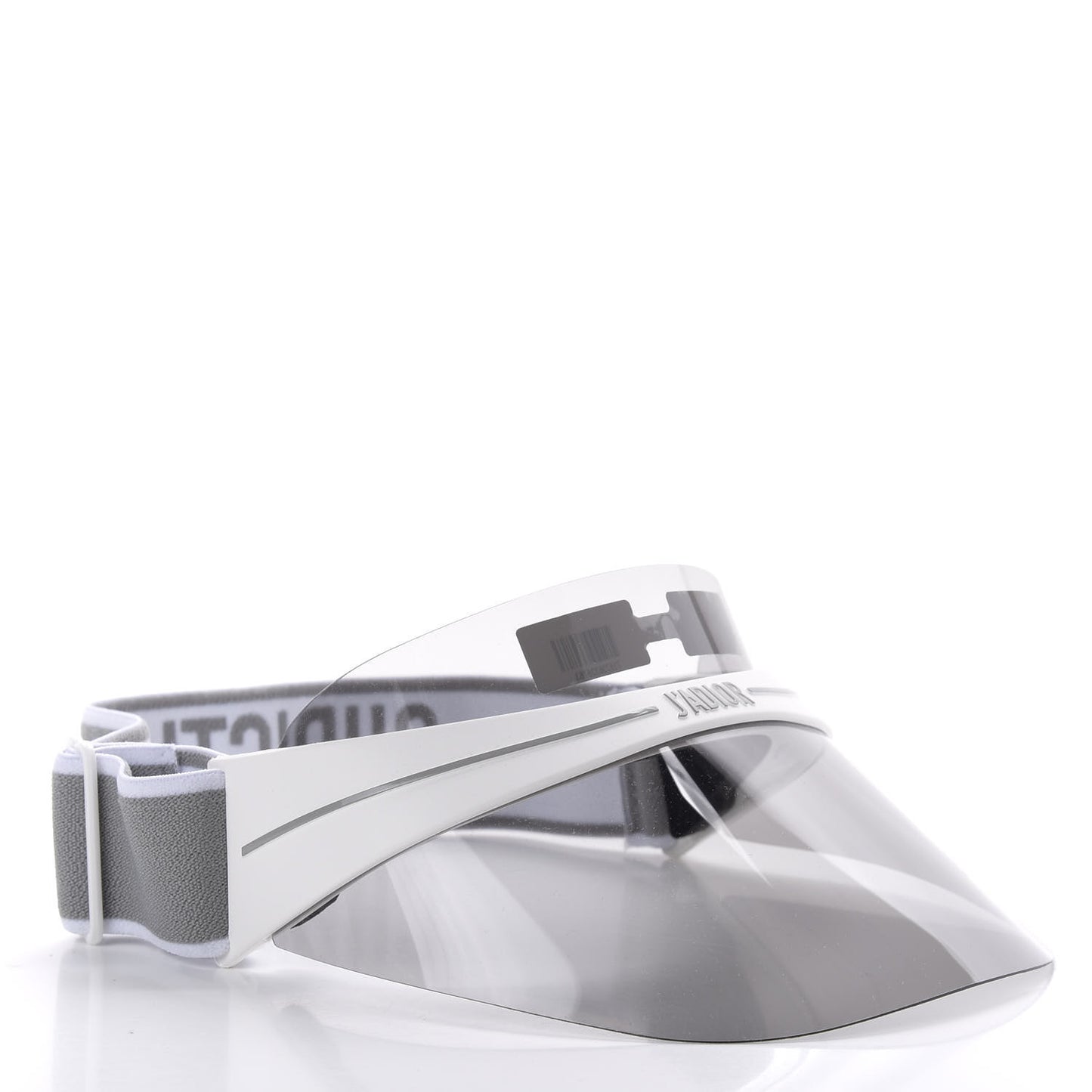 This is an authentic pair of CHRISTIAN DIOR Mirrored DiorClub1 Sun Visor in Grey. This ultra-chic visor has a white frame with classic Christian Dior name in grey across the front. The visor stays on with an elastic grey and white band also featuring the Christian Dior name. This visor is perfect for that long day out, with a distinctive look, from Dior!Follow this item for alerts. Christian Dior is a registered trademark of Christian Dior. FASHIONPHILE is not affiliated with Christian Dior.