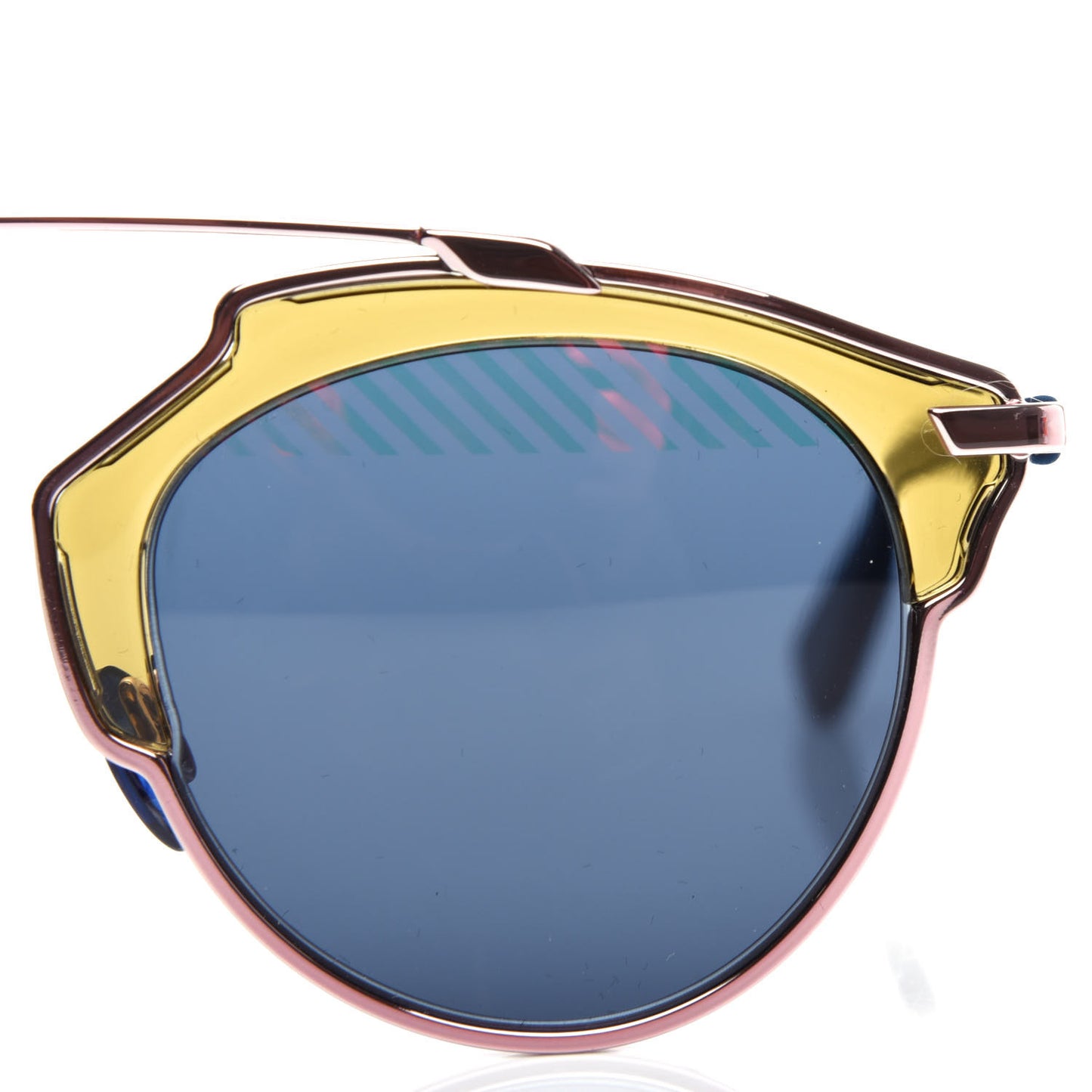 This is an authentic pair of CHRISTIAN DIOR Mirrored So Real Sunglasses in Multicolor. These modern sunglasses feature stylized aviator wire rims in rose gold with mirrored blue lenses. The arms are blue and are adorned with an engraved CD monogram at the temple.Follow this item for alerts. Christian Dior is a registered trademark of Christian Dior. FASHIONPHILE is not affiliated with Christian Dior.