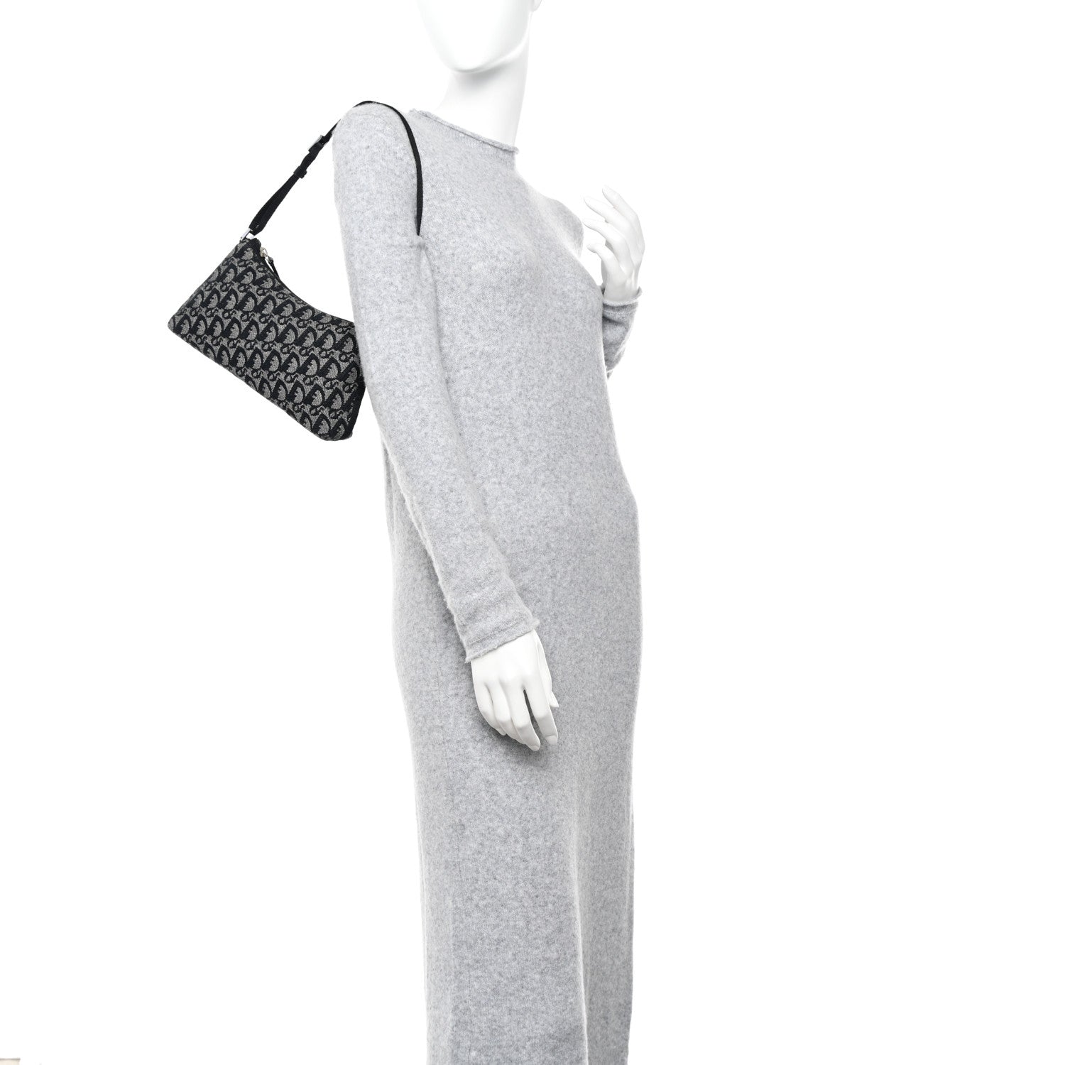 This is an authentic CHRISTIAN DIOR Monogram Shoulder Bag Pochette in Black. This chic bag is made of black Dior monogram canvas. The bag features a black canvas handle and silver hardware. The top zipper opens to a black nylon interior with a patch pocket.Follow this item for alerts. Christian Dior is a registered trademark of Christian Dior. FASHIONPHILE is not affiliated with Christian Dior.