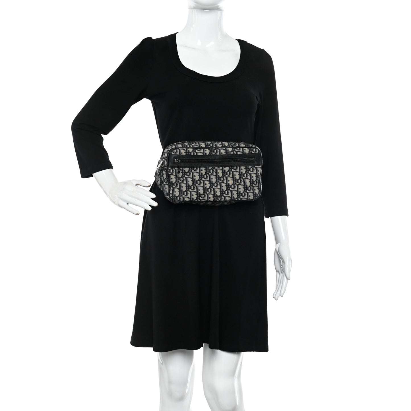 This is an authentic CHRISTIAN DIOR Oblique Belt Bag in Blue. This saddlebag is made of navy on beige Dior monogram canvas. The bag features black cowhide leather trim, a black nylon belt strap with a matte black buckle, an a front zipper pocket. The top zipper opens to a black fabric interior with a patch pocket.Follow this item for alerts. Christian Dior is a registered trademark of Christian Dior. FASHIONPHILE is not affiliated with Christian Dior.