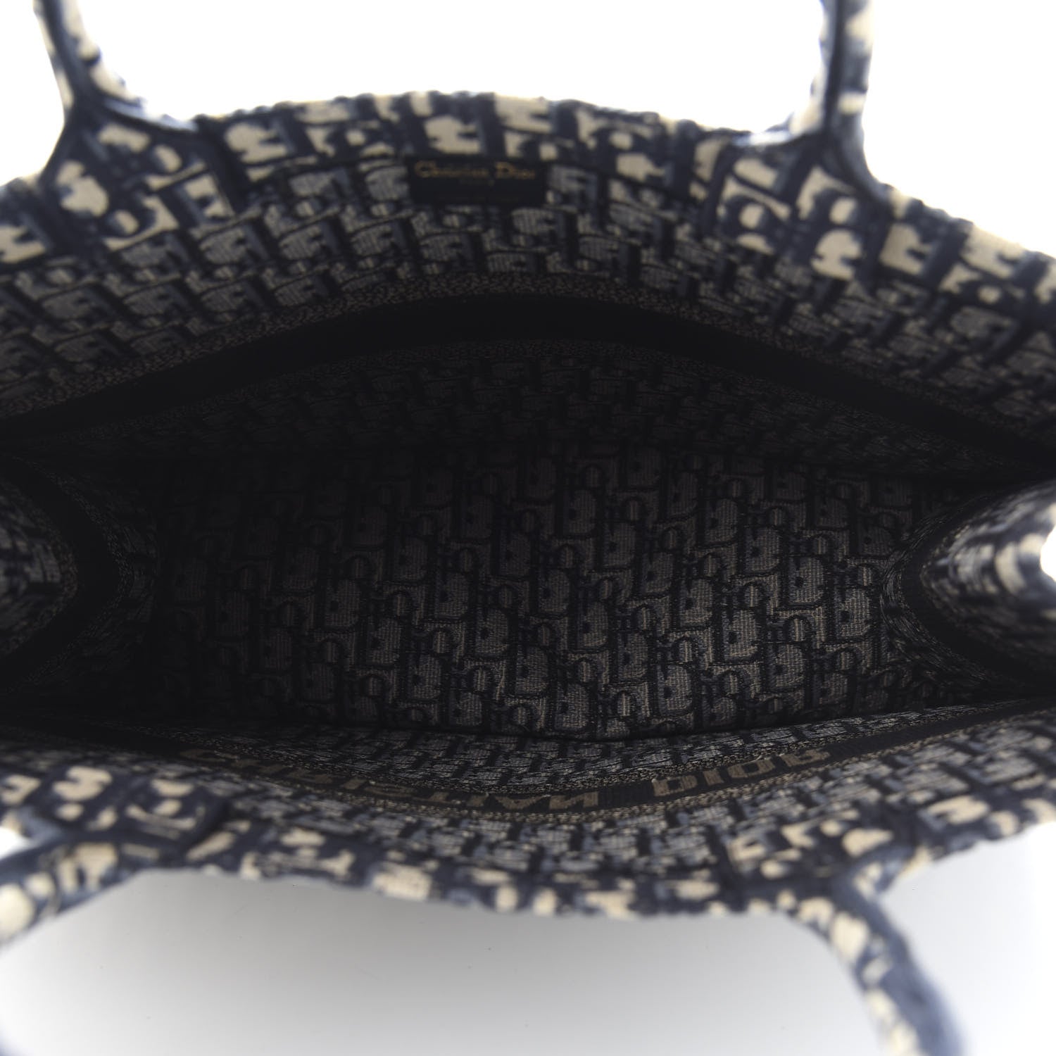 This is an authentic CHRISTIAN DIOR Oblique Book Tote in Bleu and Multicolor. This lovely tote is crafted of classic Oblique print canvas in navy and beige. The bag features rolled canvas top handles and a CHRISTIAN DIOR logo embroidered on the front. The top is open to a spacious fabric interior. This is an excellent tote for everyday wear, only from Dior!