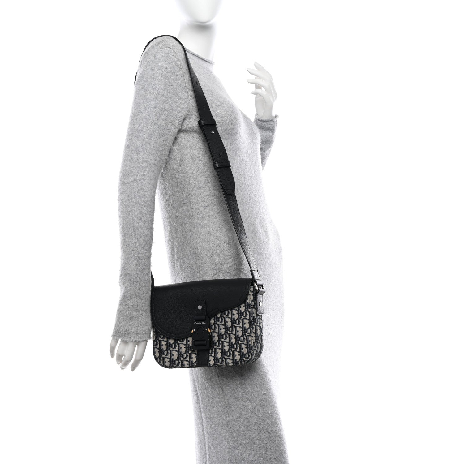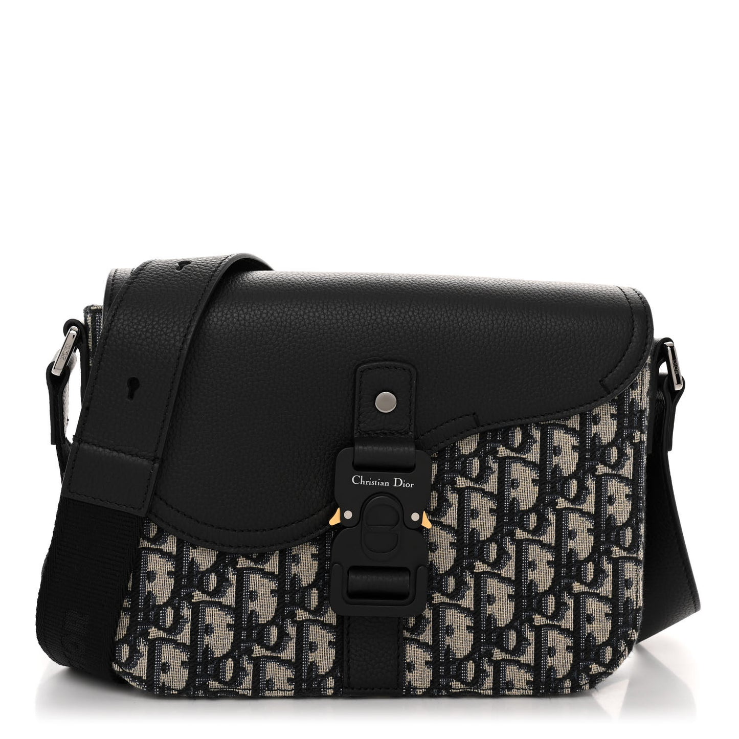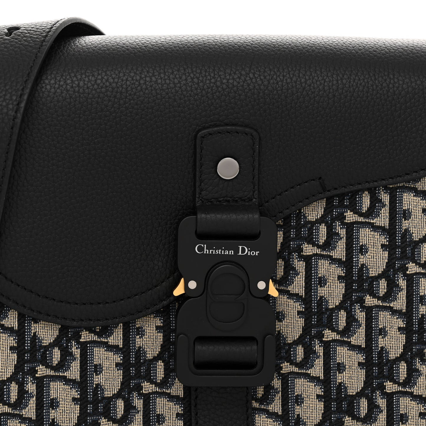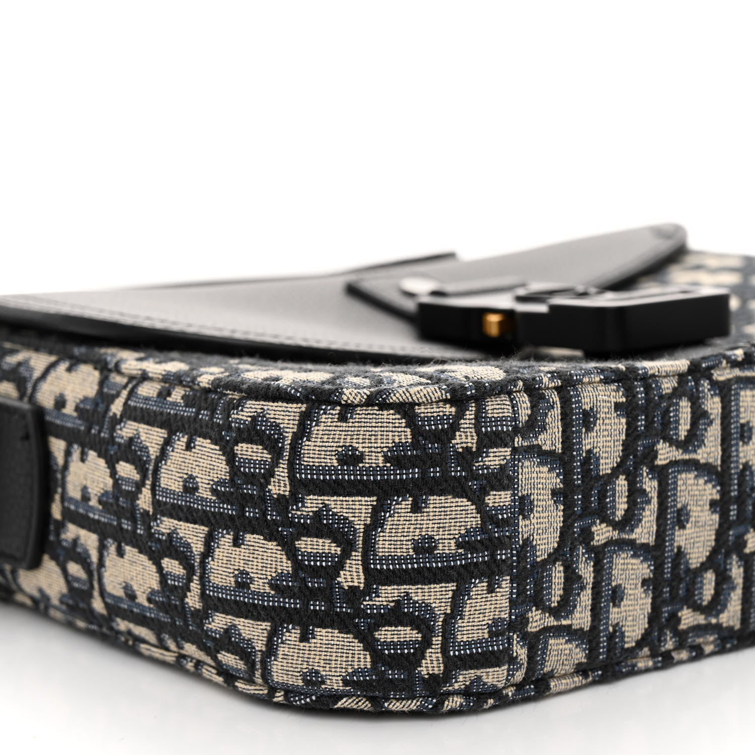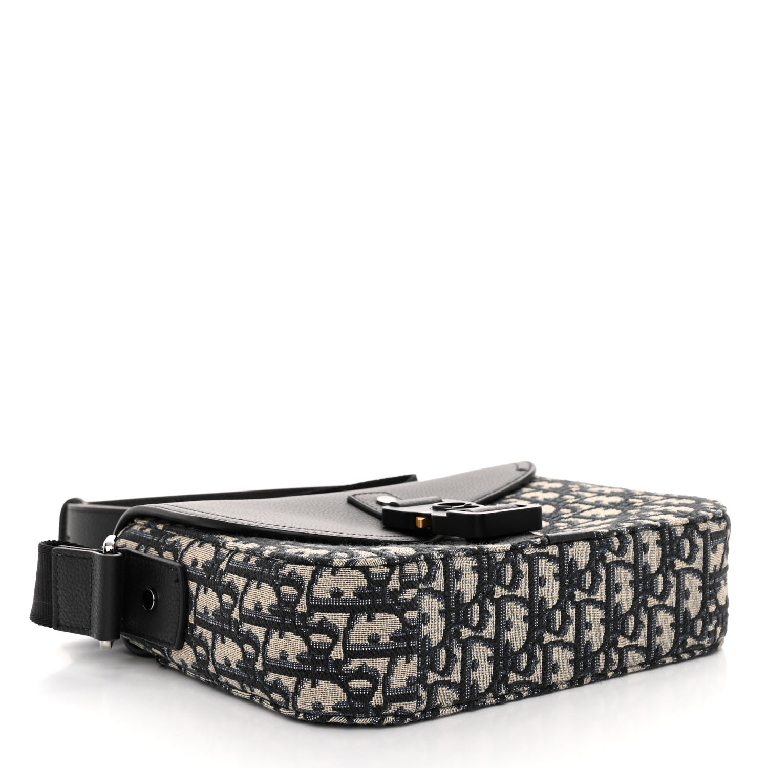 Christian Dior/ Bags/ Shoulder Bags /Christian Dior Oblique Jacquard Grained Calfskin Small Saddle Messenger Bag Beige Black