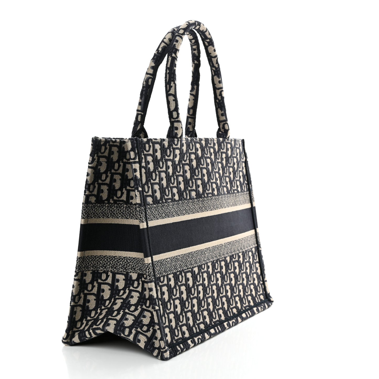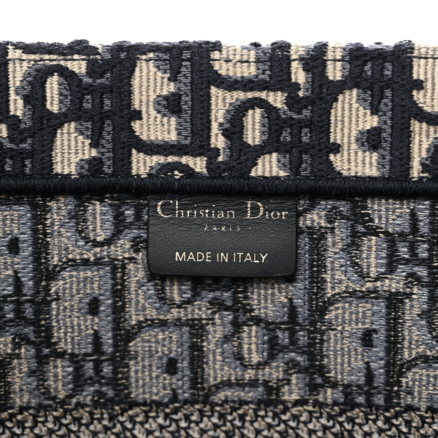 This is an authentic CHRISTIAN DIOR Oblique Medium Book Tote in Blue and Multicolor. This lovely tote is crafted of classic Oblique print canvas in navy and beige. The bag features rolled canvas top handles and a CHRISTIAN DIOR logo embroidered on the front. The top is open to a spacious fabric interior.Follow this item for alerts. Christian Dior is a registered trademark of Christian Dior. FASHIONPHILE is not affiliated with Christian Dior.