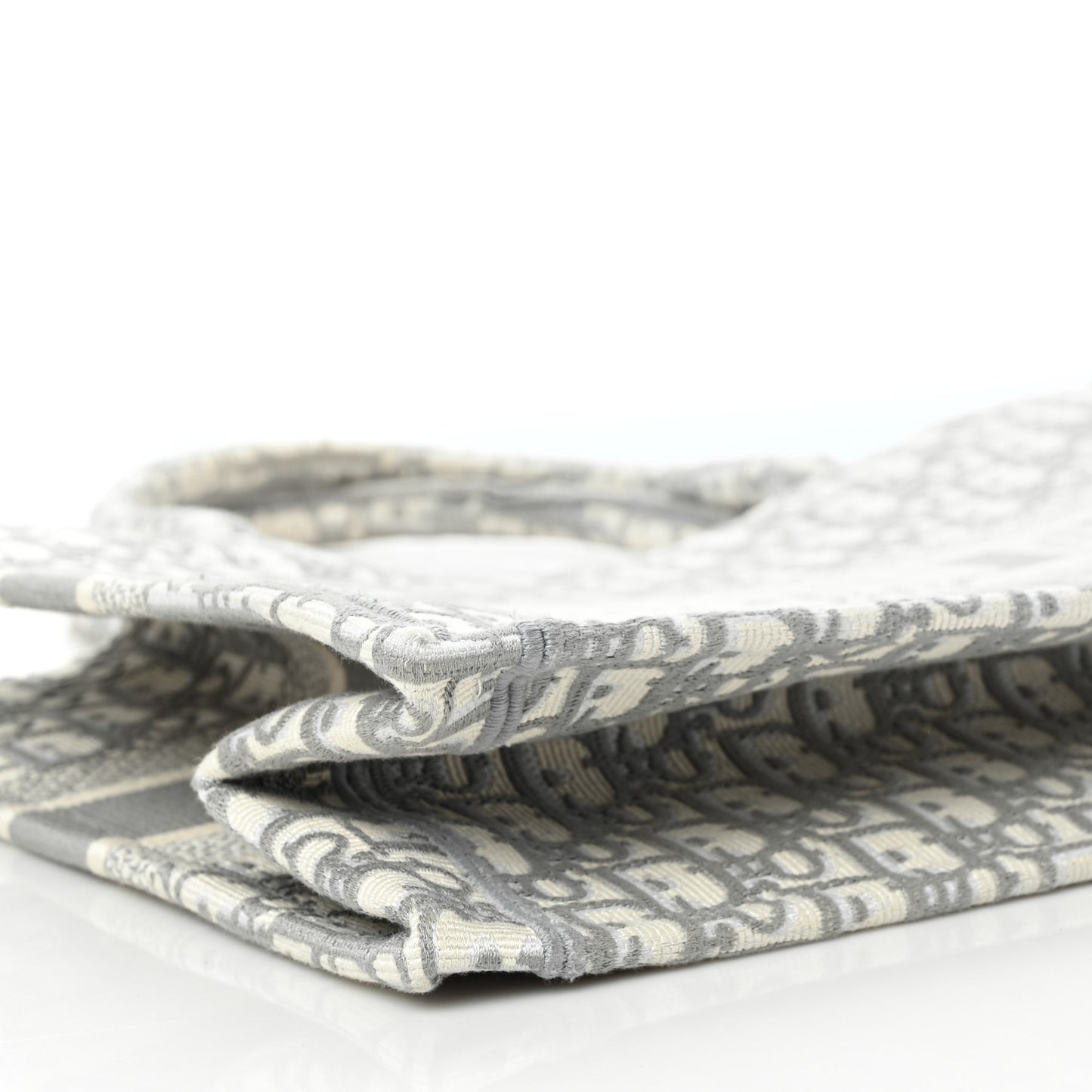 This is an authentic CHRISTIAN DIOR Oblique Medium Book Tote in Grey. This lovely tote is crafted of classic Oblique print canvas in light grey and beige. The bag features monogram canvas rolled top handles with CHRISTIAN DIOR embroidered on the front in ivory. The top is open to a spacious fabric interior.Follow this item for alerts. Christian Dior is a registered trademark of Christian Dior. FASHIONPHILE is not affiliated with Christian Dior.