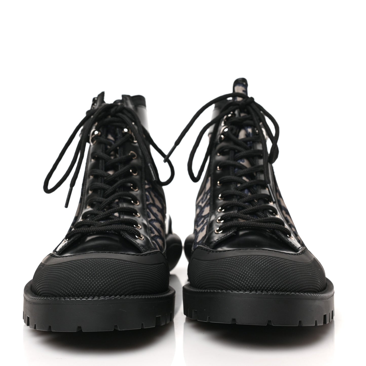 Christian Dior/ Accessories/ Shoes /Christian Dior Oblique Polished Calfskin Mens Combat Ankle Boots 41 Beige Black