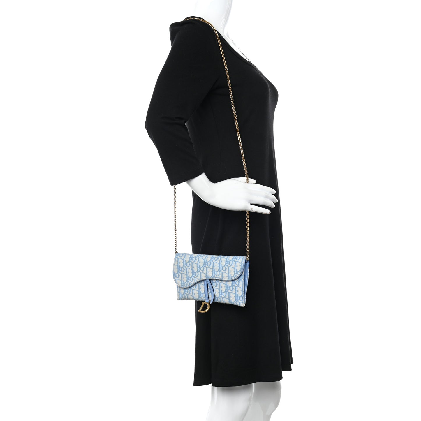 Christian Dior/ Bags/ Wallet Style /Christian Dior Oblique Saddle Chain Long Wallet Cornflower Blue