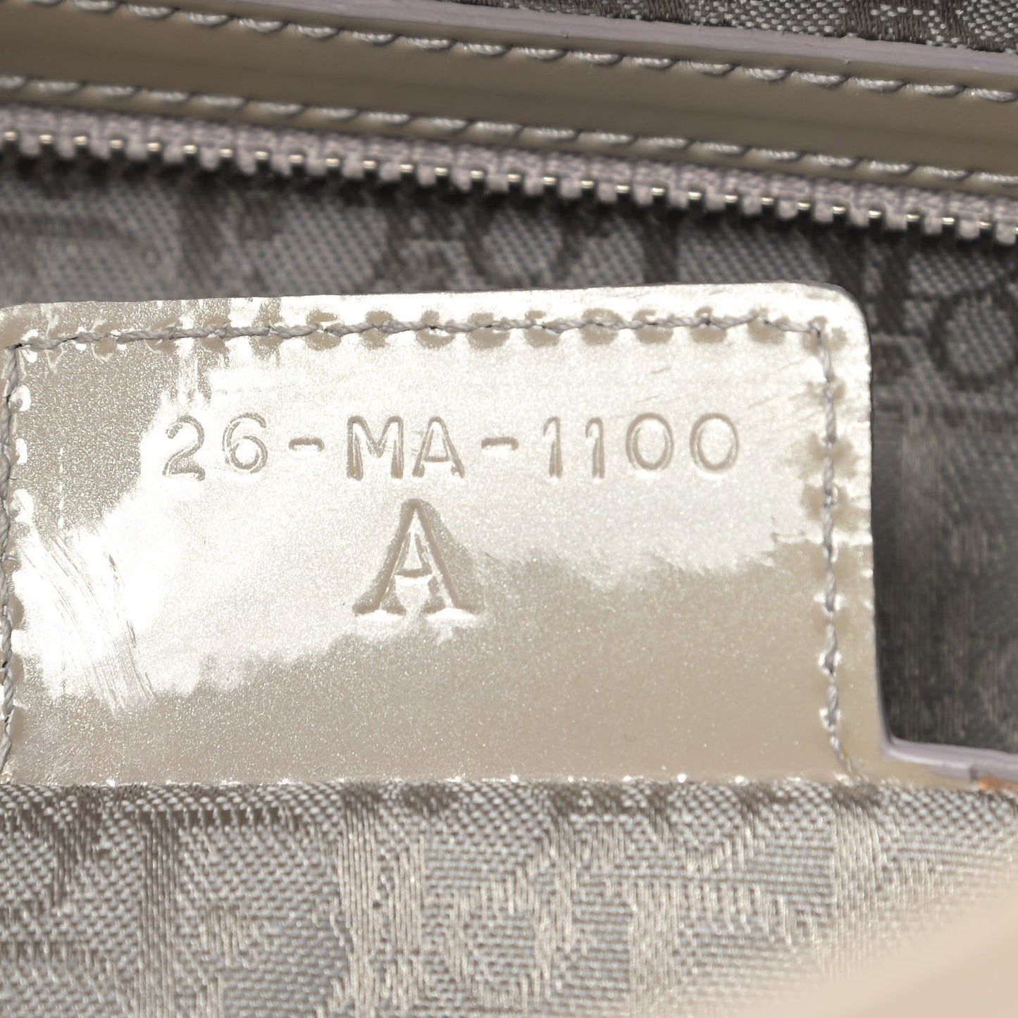 This is an authentic CHRISTIAN DIOR Patent Cannage Extra Large Lady Dior in Beige. This chic tote is crafted of geometric-quilted patent leather in a light beige. The bag features sturdy top handles, and an optional shoulder strap with silver hardware, including dangling Dior initial charms. The top zipper opens the bag to a Dior logo-jacquard fabric interior with a zipper pocket.Follow this item for alerts. Christian Dior is a registered trademark of Christian Dior. FASHIONPHILE is not affiliated with Christian Dior.