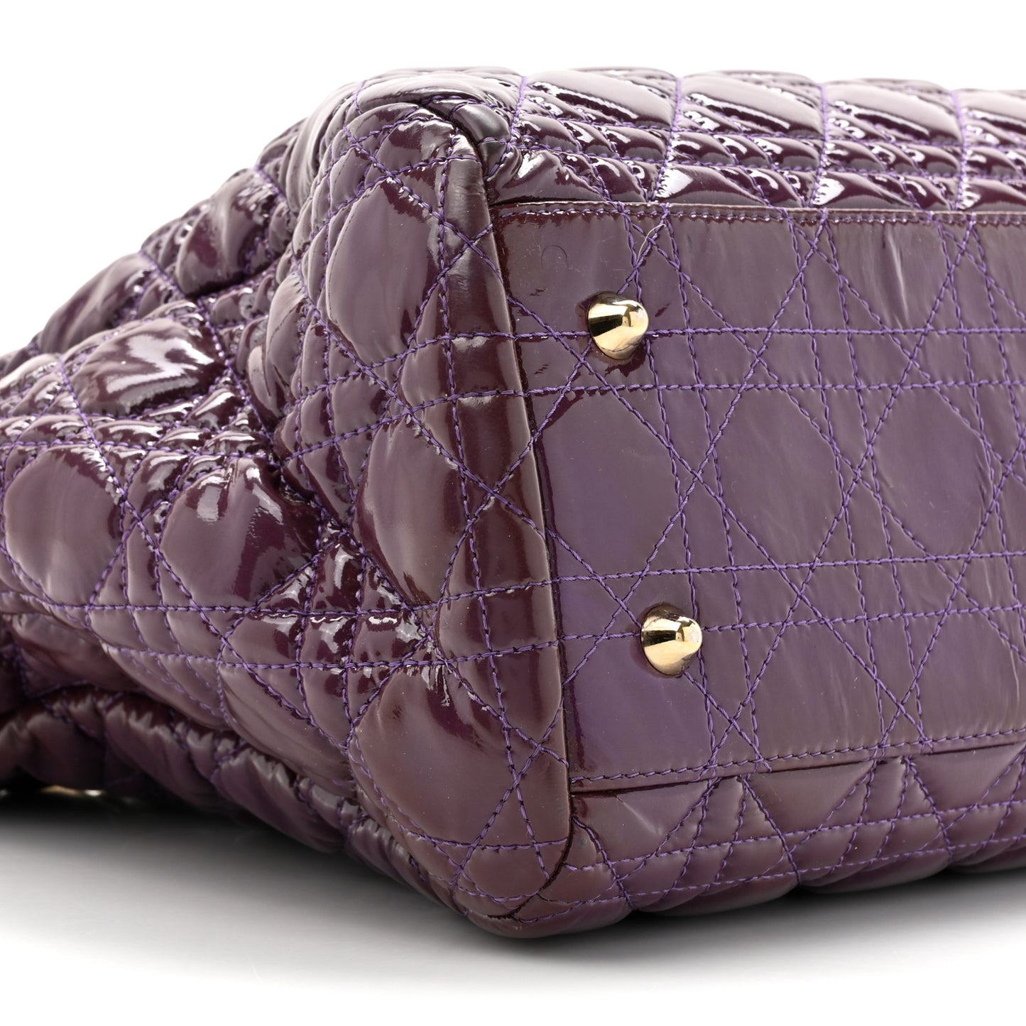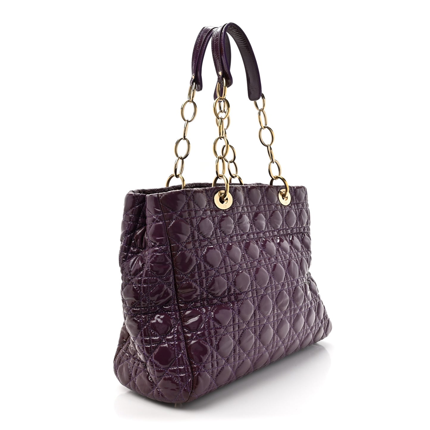 This is an authentic CHRISTIAN DIOR Patent Cannage Large Dior Soft Shopping Tote in Dark Pink. This stunning tote is crafted of luxuriously polished geometric-quilted patent leather in pink. The bag features silver chain-link shoulder straps with leather shoulder pads and a silver Dior logo charm. The top is open to a partitioned dark pink interior with zipper pocket, patch pockets, and a central zipper compartment.Follow this item for alerts. Christian Dior is a registered trademark of Christian Dior. FASHIONPHILE is not affiliated with Christian Dior.