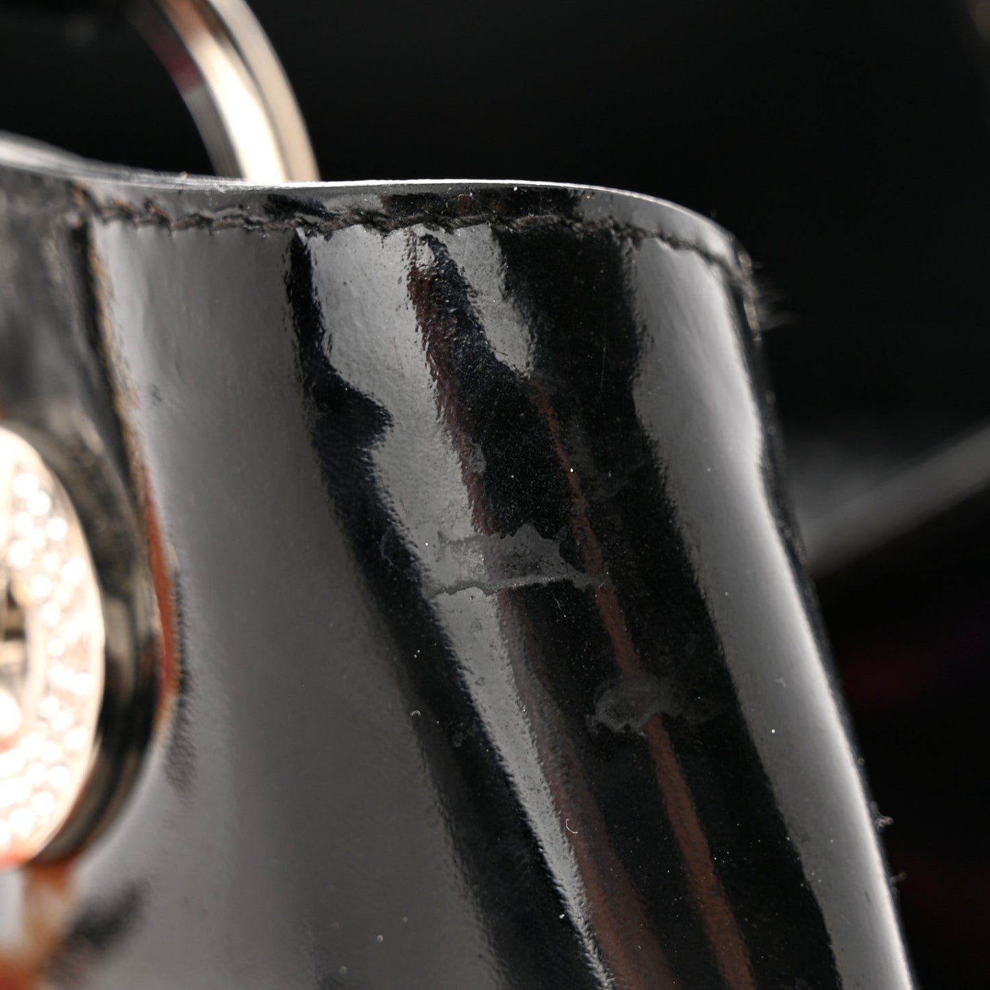 Patent Crystal Embellished Canvas Lips Print Tote Black Multicolor