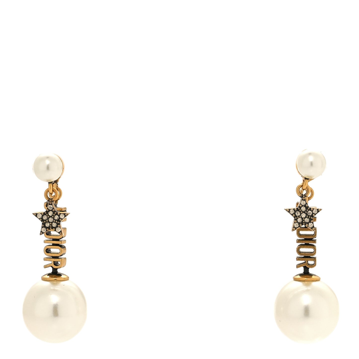 This is a charming pair of CHRISTIAN DIOR Pearl J'Adior Tribal Earrings in Gold. These tribal inspired earrings feature a dangling 'J'ADIOR' that hangs below the ear, while the larger faux pearl peeps out from behind the earlobe. The small front pearl is embellished with a star.Follow this item for alerts. Christian Dior is a registered trademark of Christian Dior. FASHIONPHILE is not affiliated with Christian Dior.