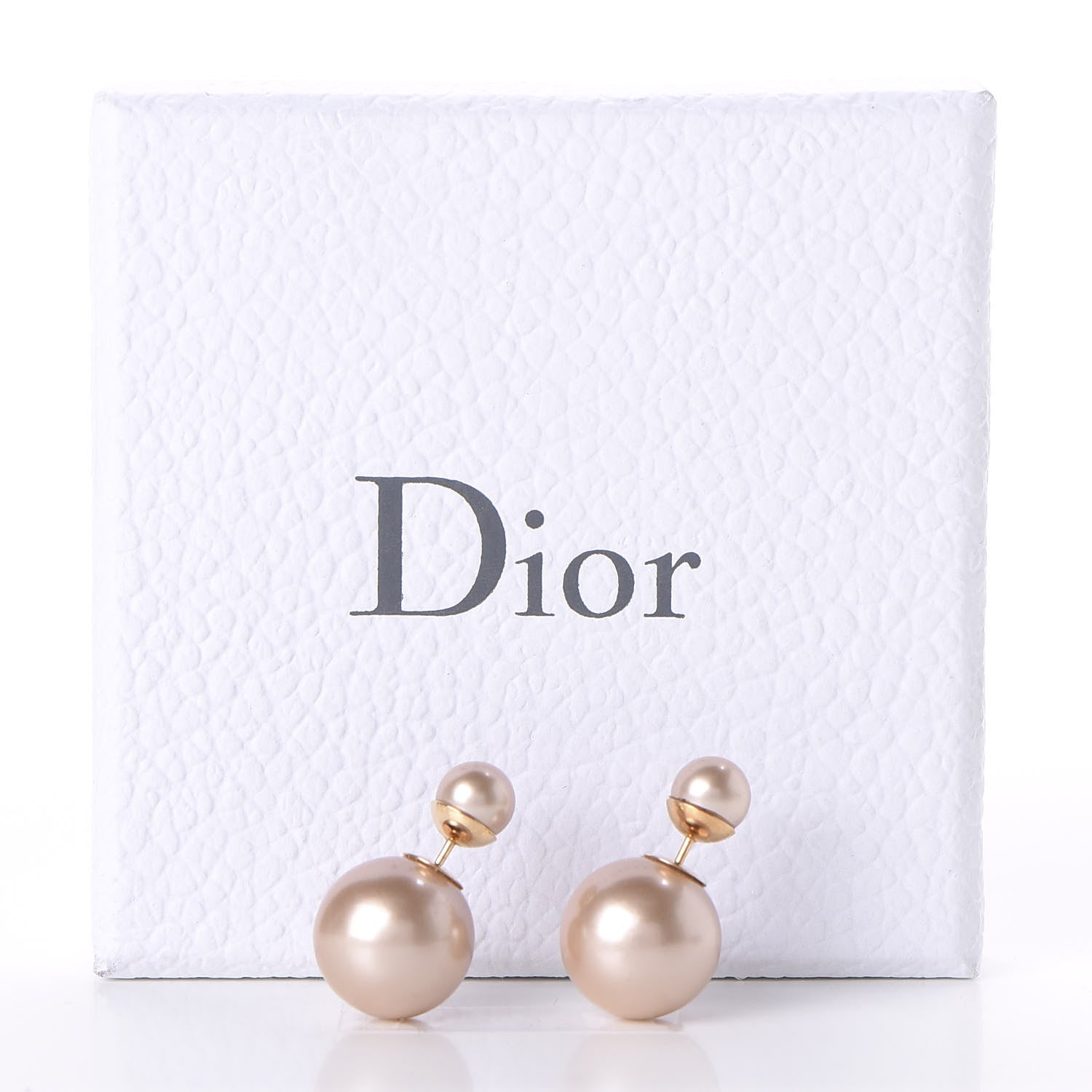 This is a charming pair of CHRISTIAN DIOR Pearl Mise En Dior Tribal Earrings in Pink. These asymmetrical tribal inspired earrings feature a small faux pearl set on gold metal that rests on the ear, while the larger faux pearl peeps out from behind the earlobe. Wear these earrings in any season for a one of a kind look only from Dior!Follow this item for alerts. Christian Dior is a registered trademark of Christian Dior. FASHIONPHILE is not affiliated with Christian Dior.