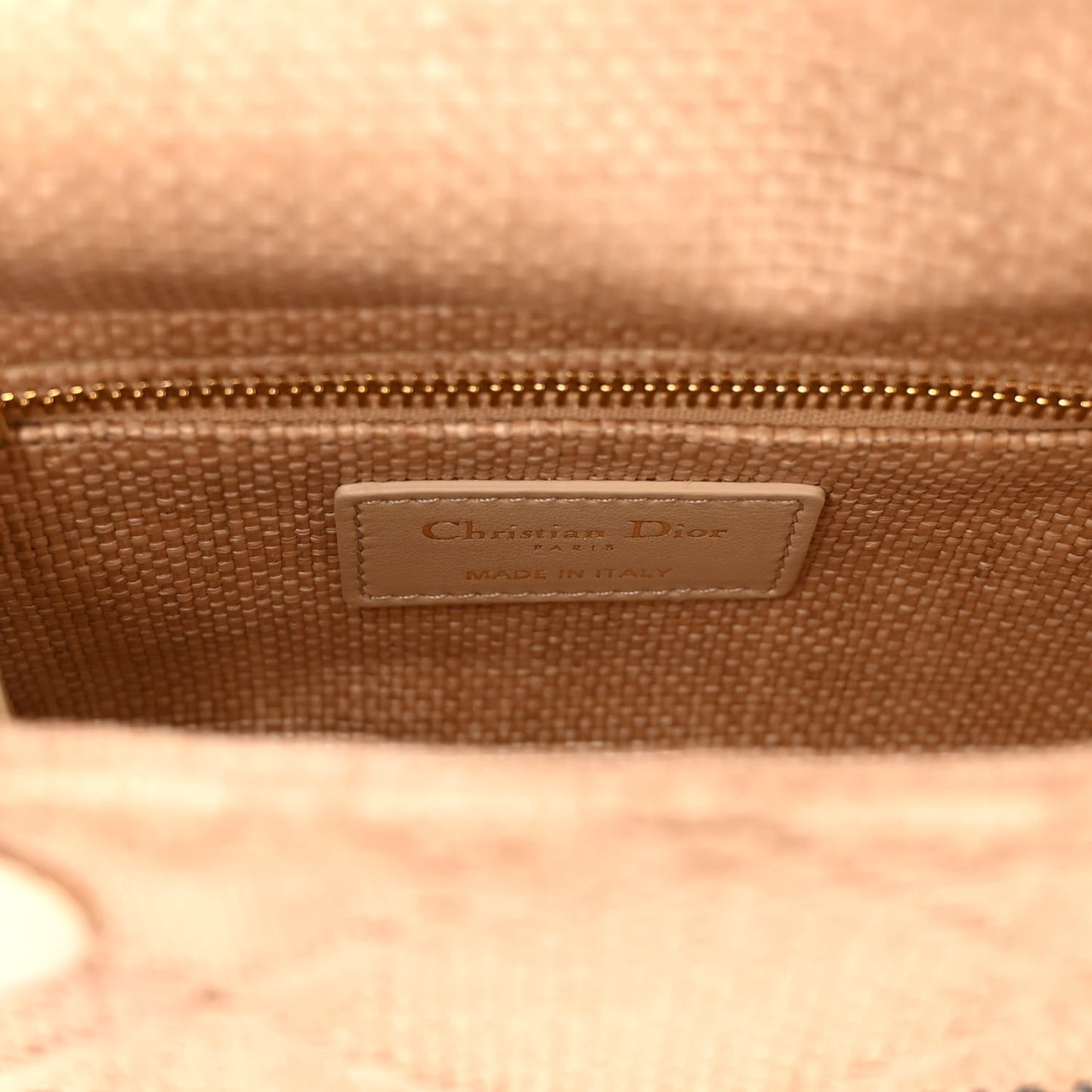 Raffia Woven Cannage Embroidered Mini Lady D-Lite Natural Black