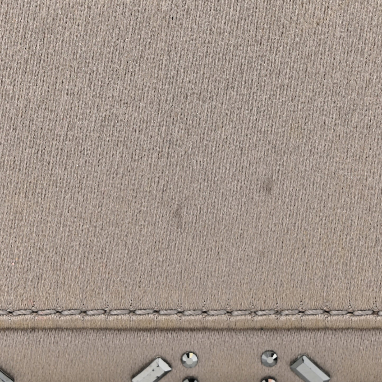 This is an authentic CHRISTIAN DIOR Satin Crystal Cannage Mini Lady Dior in Gray. This stylish small tote is crafted of fine grey satin with crystals dispersed throughout in a geometric quilted pattern. The bag features satin top handles, an optional shoulder strap with polished silver hardware including wide eyelets and Dior letter charms. The top is open to a grey satin interior with a zipper pocket.Follow this item for alerts. Christian Dior is a registered trademark of Christian Dior. FASHIONPHILE is not affiliated with Christian Dior.