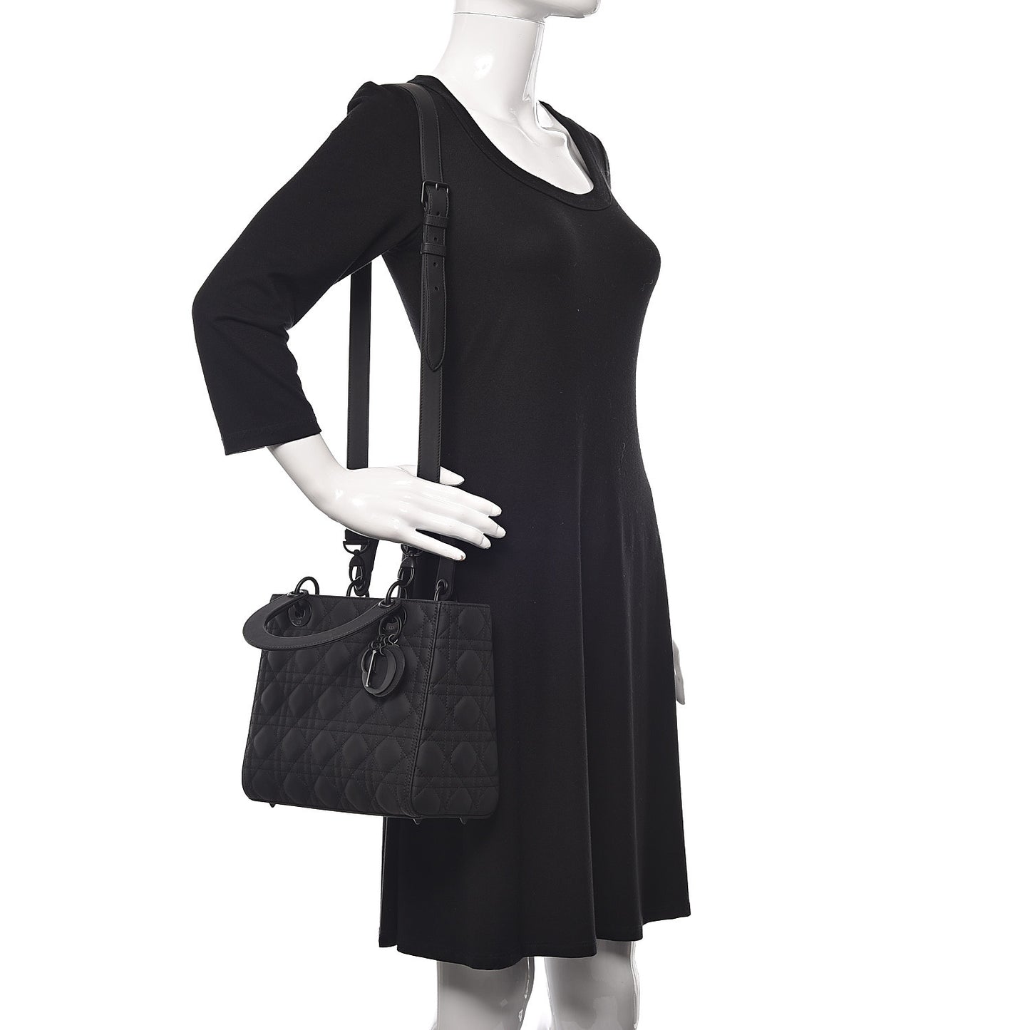 This is an authentic CHRISTIAN DIOR Ultra Matte Calfskin Cannage Medium Lady Dior in Black. This handbag is crafted of matte black calfskin leather with diamond quilting. The bag features sturdy leather top handles, matte black hardware, an optional leather shoulder strap, and hanging Dior initials logo charms. The top is open to a matching black suede leather interior with zipper and patch pockets.Follow this item for alerts. Christian Dior is a registered trademark of Christian Dior. FASHIONPHILE is not affiliated with Christian Dior.
