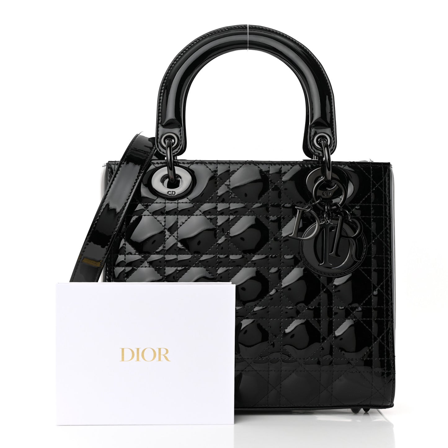 Ultraglossy Patent Cannage Medium Lady Dior Black