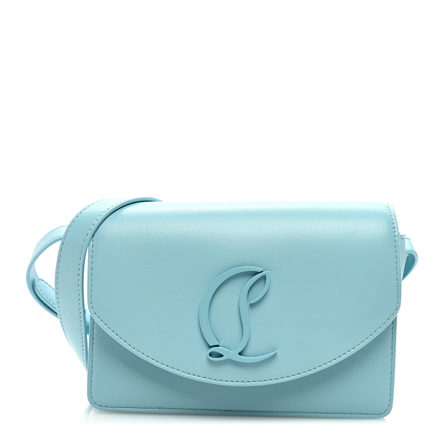 This is an authentic CHRISTIAN LOUBOUTIN Nappa Loubi54 Crossbody Bag in Mineral. This clutch is crafted of leather in blue with an embellished silver Christian Louboutin logo. The bag features a blue shoulder strap, silver hardware, and a back pocket. The magnetic front flap opens to a red leather lining with a patch pocket.Follow this item for alerts. Christian Louboutin is a registered trademark of Christian Louboutin. FASHIONPHILE is not affiliated with Christian Louboutin.