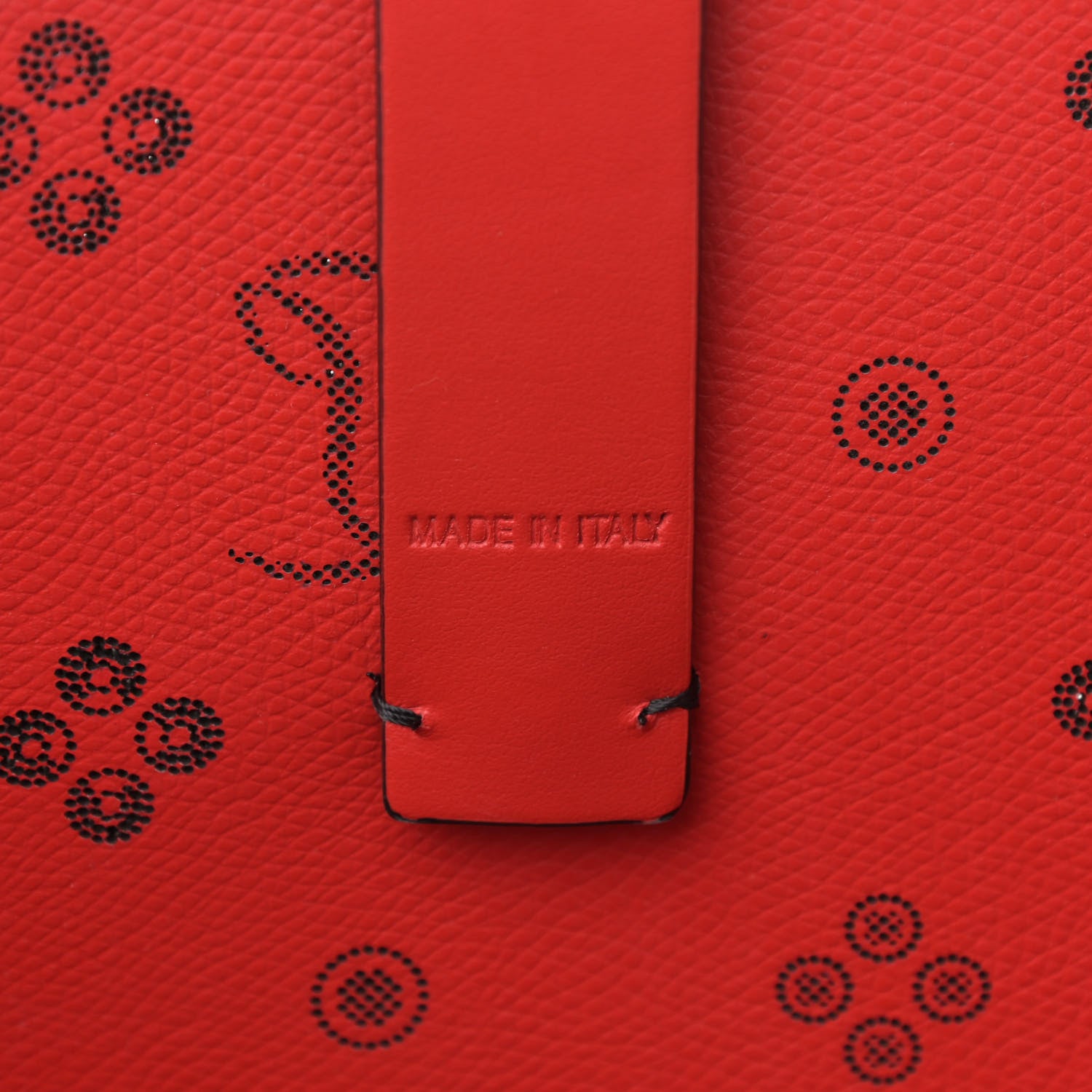 This is an authentic CHRISTIAN LOUBOUTIN Calfskin Loubinthesky East West Cabata Tote in Black. This chic tote is crafted of smooth leather with a bold print in black. It features leather strap handles with matte black studs accents and an embossed logo script across the base. The top is open to a red leather interior with a matching removable pouch.Follow this item for alerts. Christian Louboutin is a registered trademark of Christian Louboutin. FASHIONPHILE is not affiliated with Christian Louboutin.