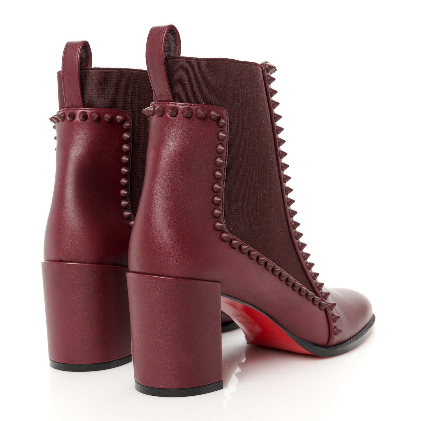 This is an authentic pair of CHRISTIAN LOUBOUTIN Calfskin Out Line Spike Lug 70 Boots size 36.5 in Bordeaux. These booties are crafted out of red calfskin leather and feature a round toe, leather uppers with spikes and studs, and a 3-inch heel.Follow this item for alerts. Christian Louboutin is a registered trademark of Christian Louboutin. FASHIONPHILE is not affiliated with Christian Louboutin.
