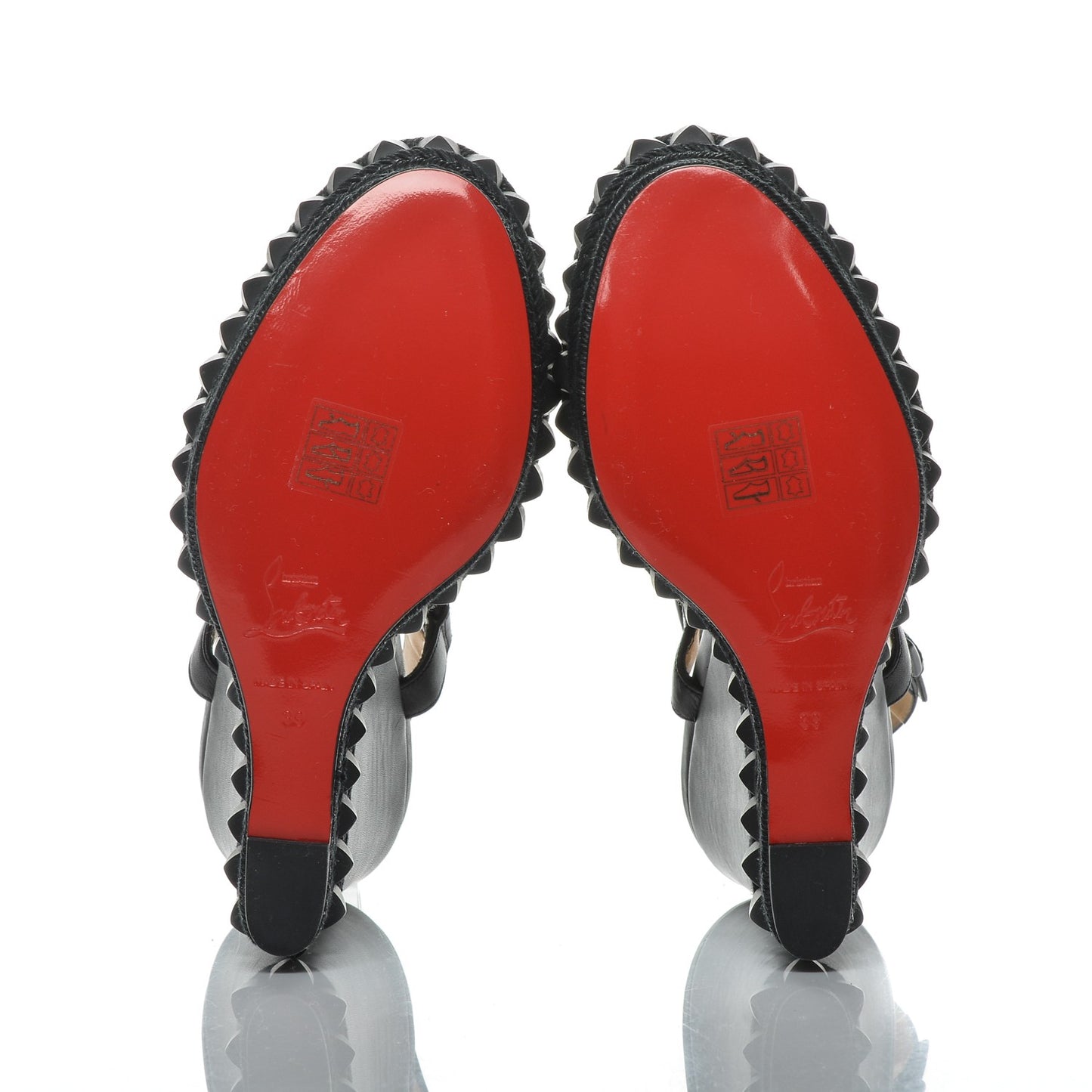 This is an authentic pair of CHRISTIAN LOUBOUTIN Calfskin Rope Cataclou 140 Wedges 39 in Mat Black. These sandal pumps are crafted of black calfskin and rope. The wedges feature black leather toe and ankle straps lined with matching pyramid studs. These are wedges are perfect for any occasion, from Christian Louboutin!Follow this item for alerts. Christian Louboutin is a registered trademark of Christian Louboutin. FASHIONPHILE is not affiliated with Christian Louboutin.