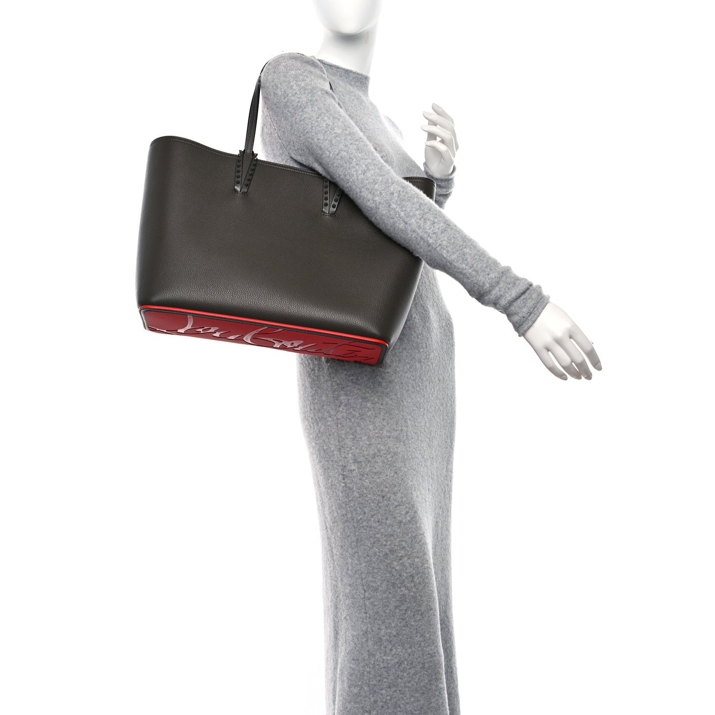This is an authentic CHRISTIAN LOUBOUTIN Calfskin Spikes East West Cabata Tote in Charbon. This chic tote is crafted of calfskin leather in gray. It features gray leather strap handles with silver studs and a red rubber base. The top opens to a red leather interior with a matching pouch.Follow this item for alerts. Christian Louboutin is a registered trademark of Christian Louboutin. FASHIONPHILE is not affiliated with Christian Louboutin.