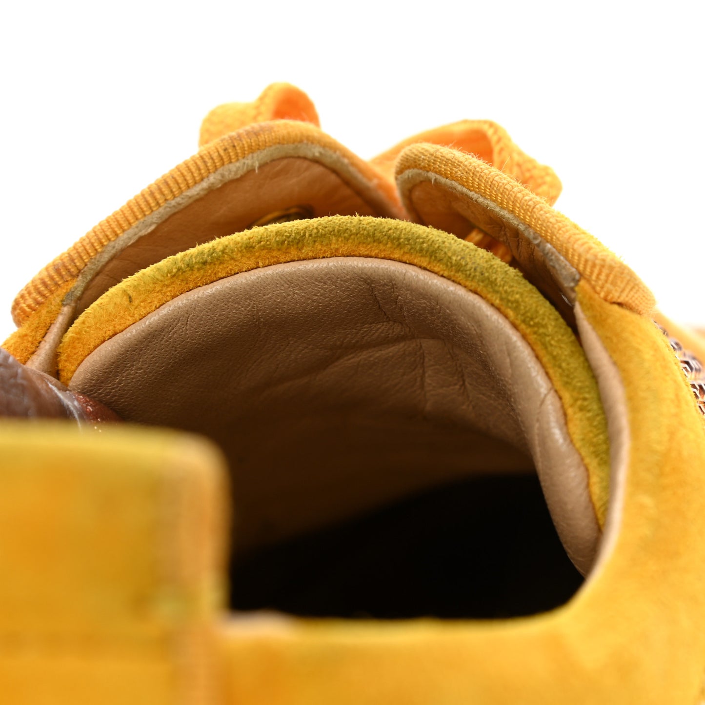 This is an authentic pair of CHRISTIAN LOUBOUTIN Calfskin Veau Velours Strass Louis Junior Flat Sneakers size 41 in Topaz. These classic leather high top style sneakers feature a striking design of a crystal studded cap toe and side panels that are lined with bright yellow leather and trimming. Casual yet stylish, these red soled shoes will elevate any look, only from Christian Louboutin!Follow this item for alerts. Christian Louboutin is a registered trademark of Christian Louboutin. FASHIONPHILE is not affiliated with Christian Louboutin.