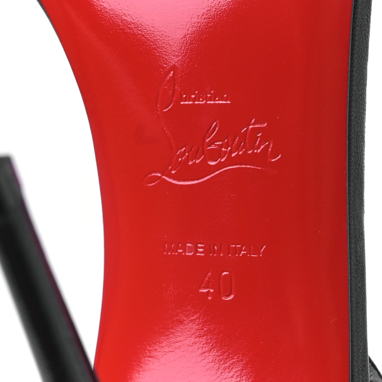 These are authentic CHRISTIAN LOUBOUTIN Kid Spiked So Me 100 Sandals size 40 in Black. These stunning pumps are crafted of black kid leather. They feature silver spikes and 4.25-inch stiletto heels.Follow this item for alerts. Christian Louboutin is a registered trademark of Christian Louboutin. FASHIONPHILE is not affiliated with Christian Louboutin.