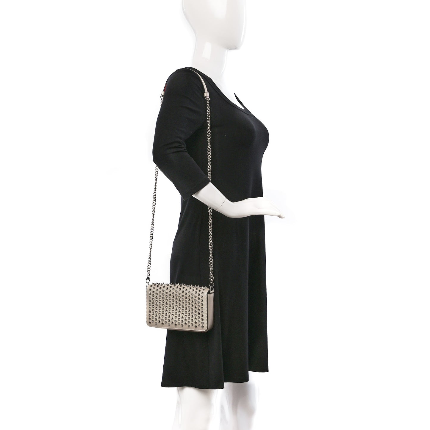 Christian Louboutin/ Bags/ Wallet Style /Christian Louboutin Metallic Calfskin Spikes Zoompouch Nude