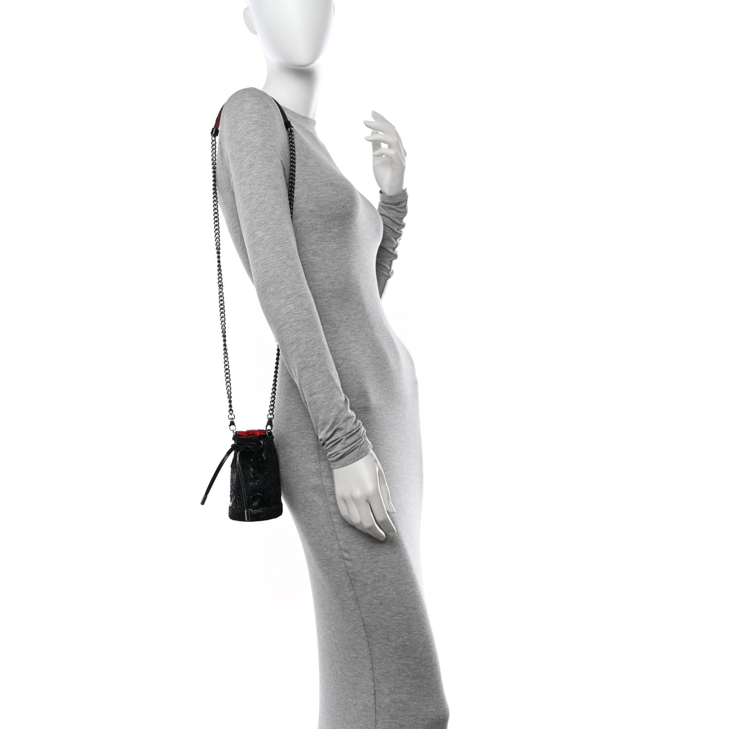 This is an iconic CHRISTIAN LOUBOUTIN Metallic Sequin Mini Pleated Marie Jane Bucket Bag in Black. This tiny mini bucket bag is crafted with blue metallic calfskin and features a removable chain shoulder strap. It opens to a red leather interior.Follow this item for alerts. Christian Louboutin is a registered trademark of Christian Louboutin. FASHIONPHILE is not affiliated with Christian Louboutin.