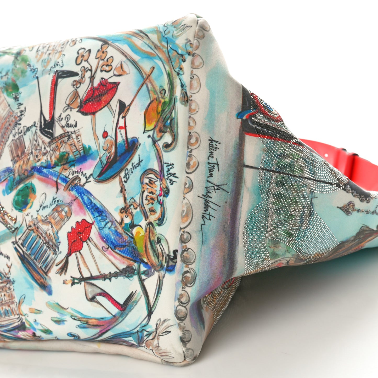 This is an authentic CHRISTIAN LOUBOUTIN Neoprene Cabaraparis Spikes Tote in Loubi and Multicolor. This chic tote is crafted of multicolored fabric. It features multicolor sequins throughout, red leather strap handles and optional shoulder strap with gold studs accents. The top is open to an art printed fabric interior with a patch pocket.Follow this item for alerts. Christian Louboutin is a registered trademark of Christian Louboutin. FASHIONPHILE is not affiliated with Christian Louboutin.