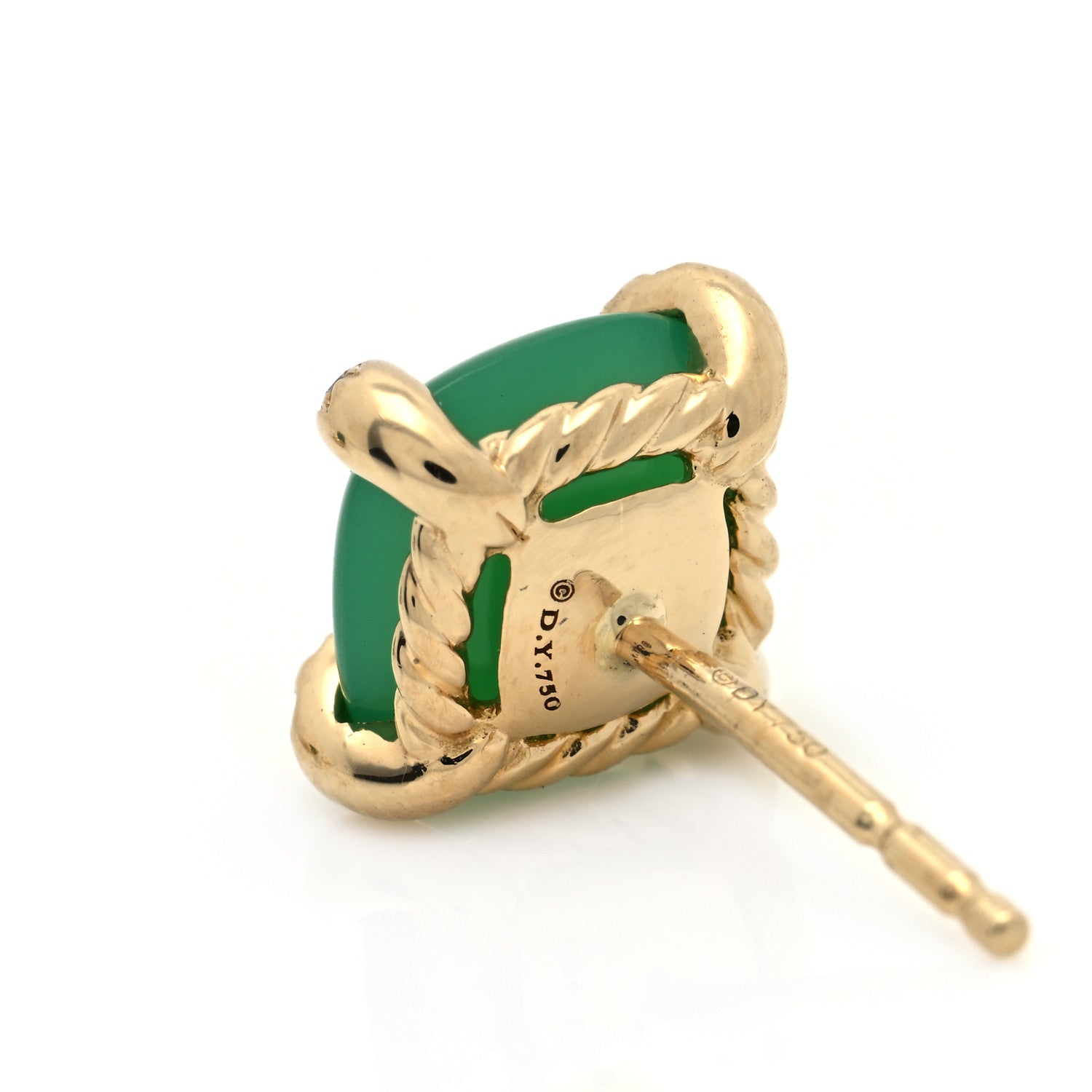 This is an authentic pair of DAVID YURMAN 18K Yellow Gold Diamond Chrysoprase 8mm Chatelaine Earrings. The earrings are crafted of 18 karat yellow gold and feature polished green chrysoprase stones held by pave set diamond prongs, approximately .06 total carat weight.Follow this item for alerts. David Yurman is a registered trademark of David Yurman. FASHIONPHILE is not affiliated with David Yurman.