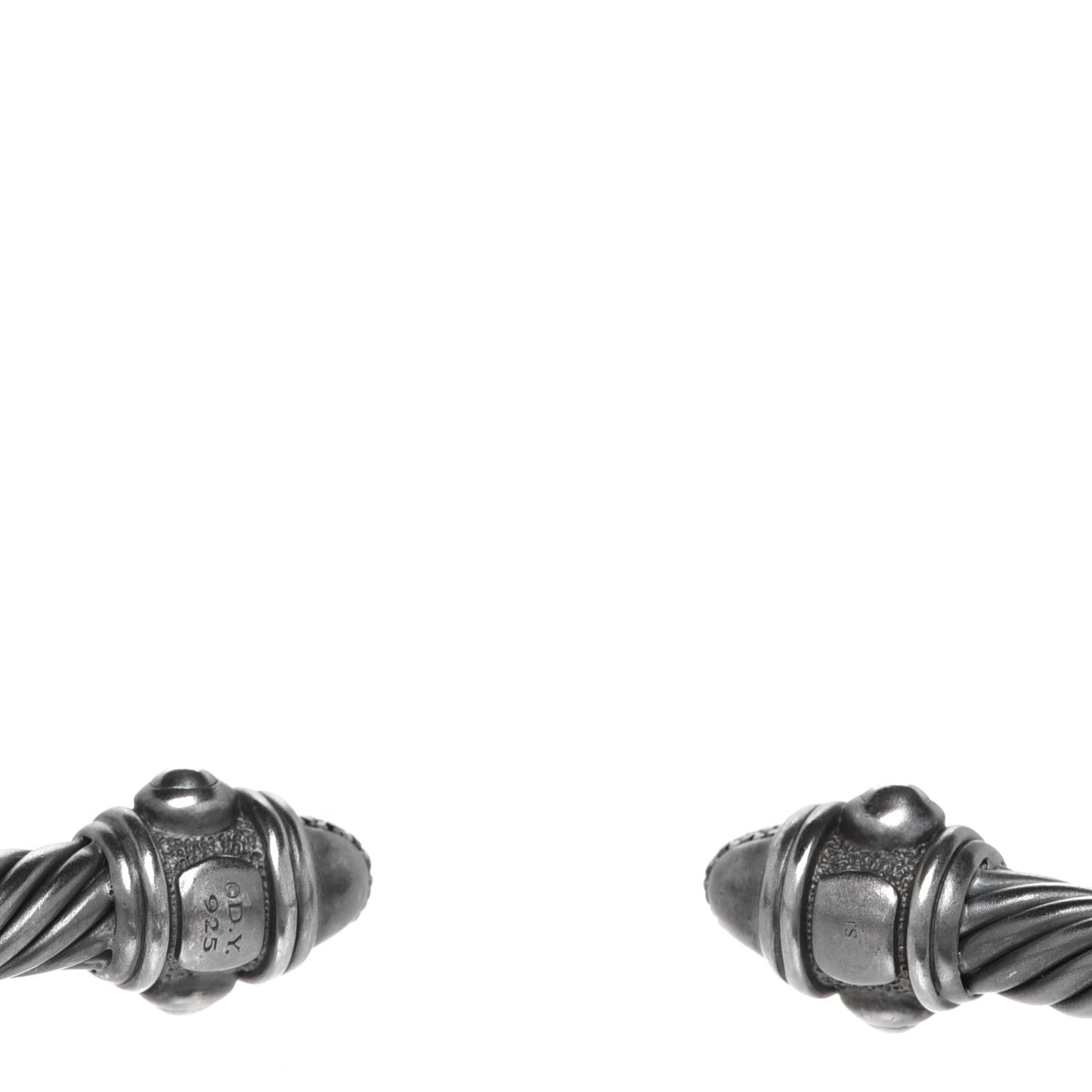 This is an authentic DAVID YURMAN Darkened Sterling Silver Black Pave Diamond 5mm Renaissance Bracelet. The bracelet is crafted of black rhodium plated sterling silver and features pave-set round cut black diamonds at the ends of the open cuff, approximately .22 total carat weight.Follow this item for alerts. David Yurman is a registered trademark of David Yurman. FASHIONPHILE is not affiliated with David Yurman.