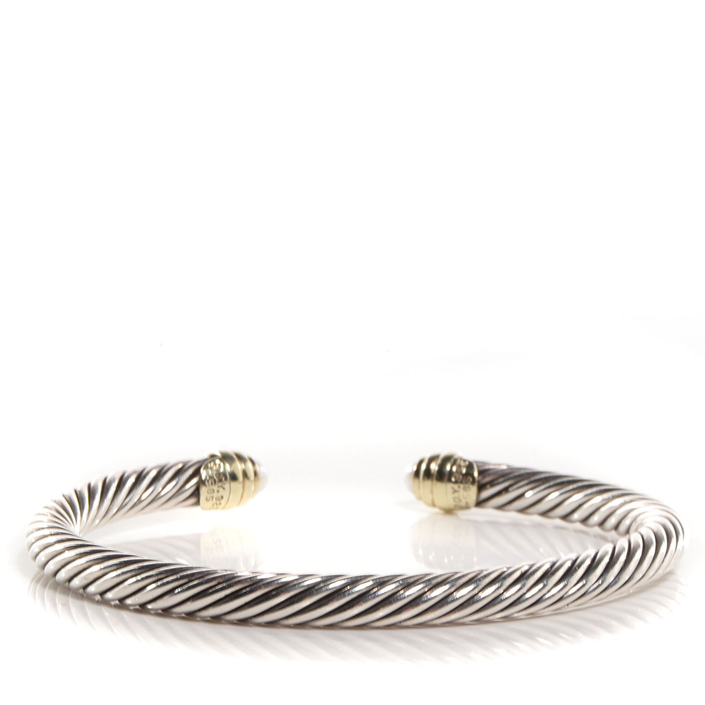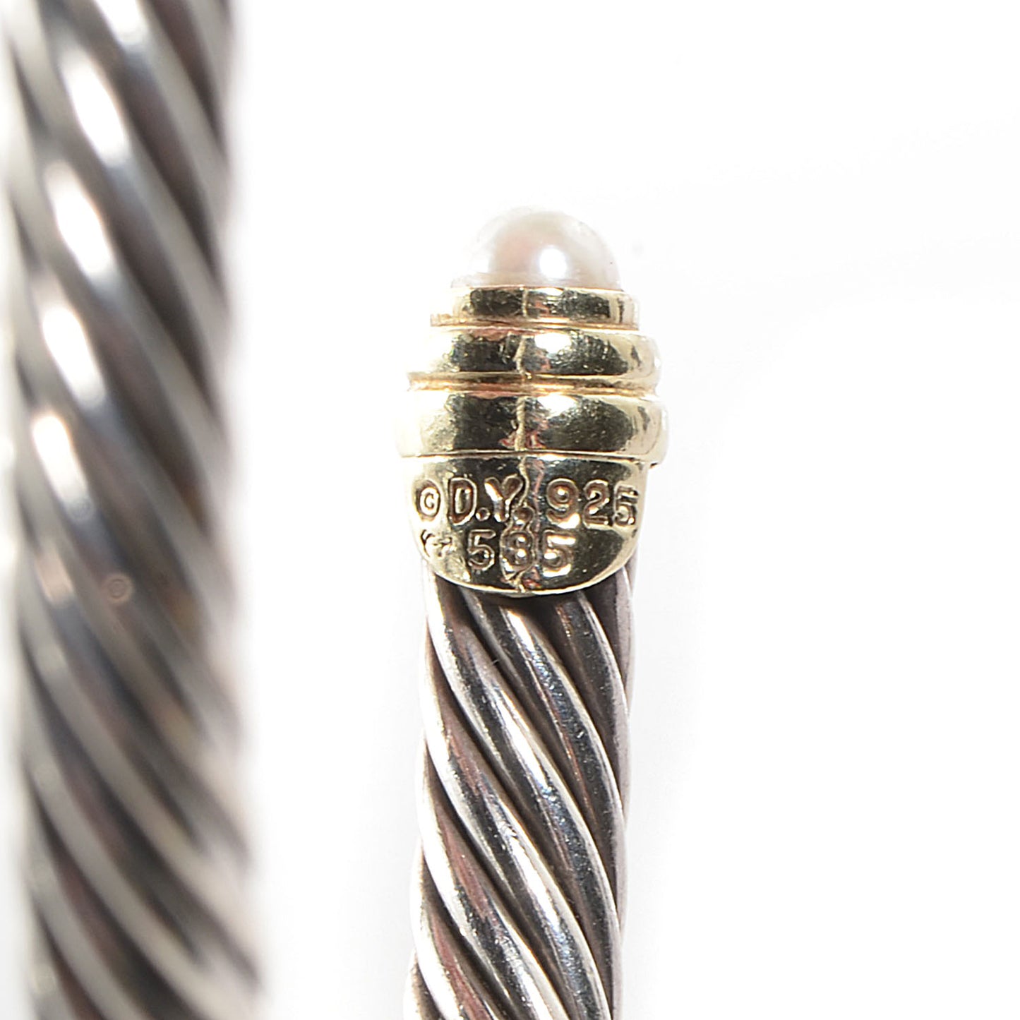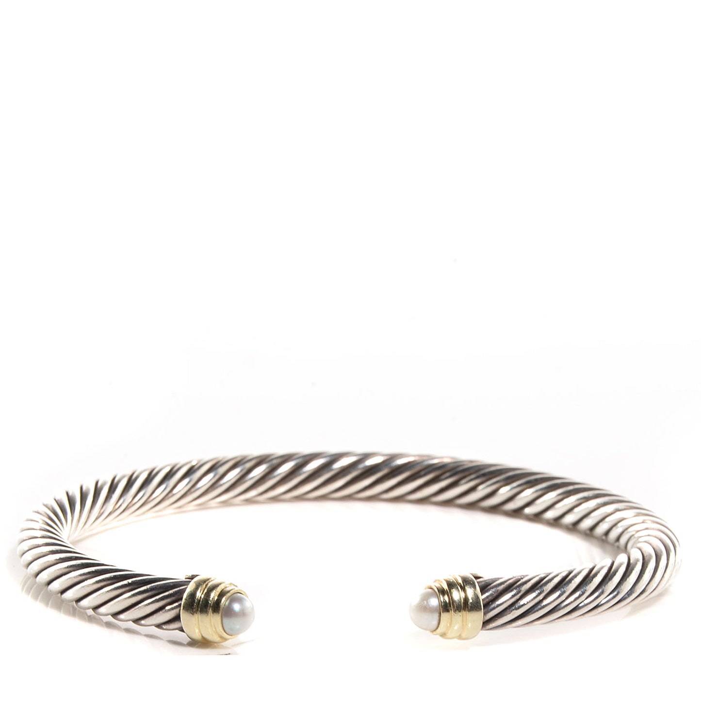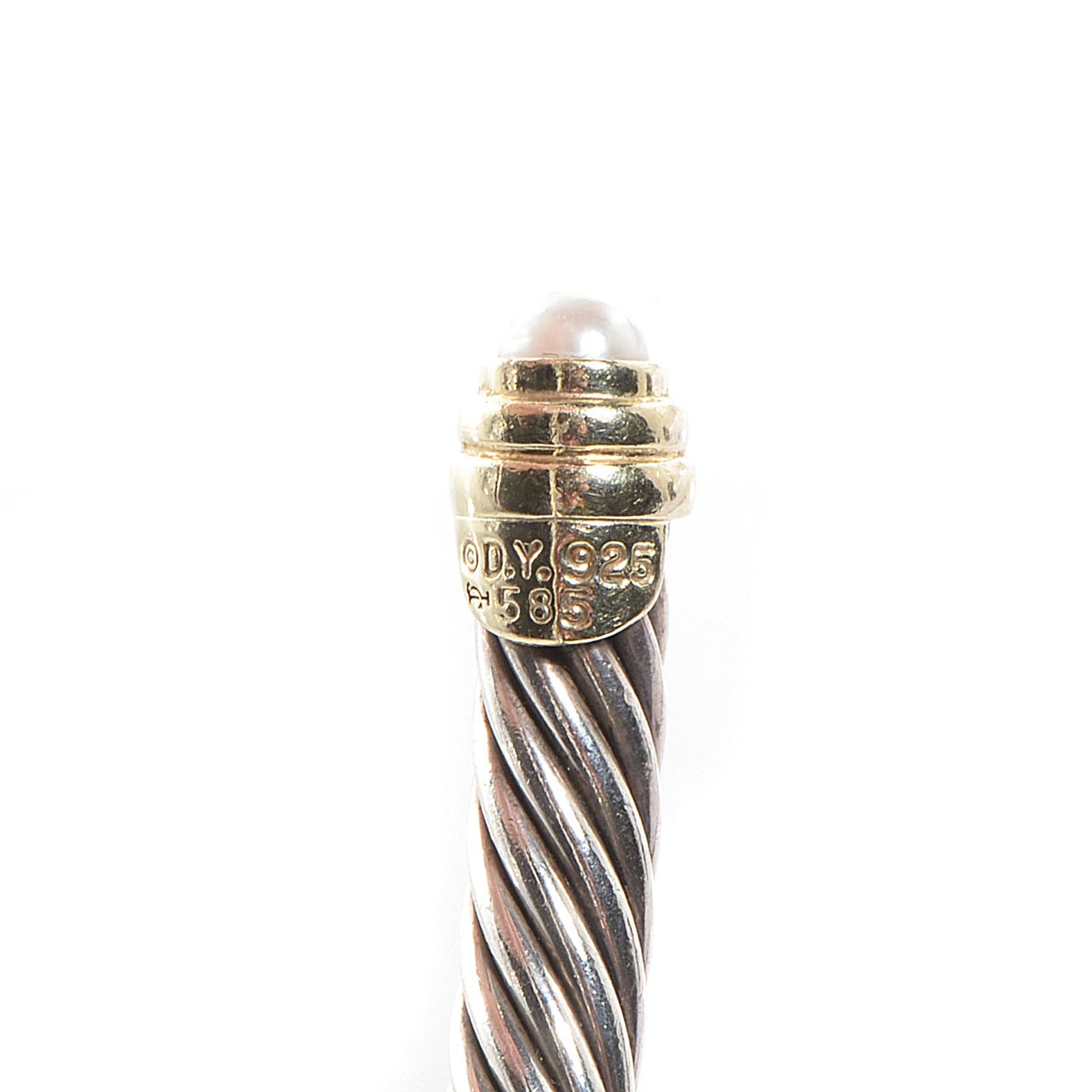 This is an authentic DAVID YURMAN Sterling Silver 14K Yellow Gold Pearl 5mm Cable Classics Bracelet. This luxurious bracelet is solid sterling silver in the signature cable style. The bangle features a 14 karat gold ring end setting and then pearl tip. This is an excellent bracelet to wear for a look of distinction only from David Yurman!Follow this item for alerts. David Yurman is a registered trademark of David Yurman. FASHIONPHILE is not affiliated with David Yurman.