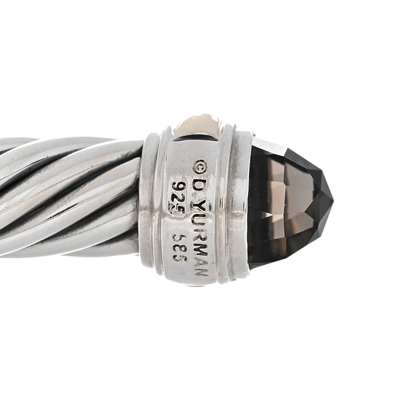 This is an authentic DAVID YURMAN Sterling Silver 14K Yellow Gold Smoky Quartz 7mm Cable Classics Bracelet. The bracelet is crafted of sterling silver and 14 karat yellow gold, and features faceted smoky quartz set on the ends.Follow this item for alerts. David Yurman is a registered trademark of David Yurman. FASHIONPHILE is not affiliated with David Yurman.