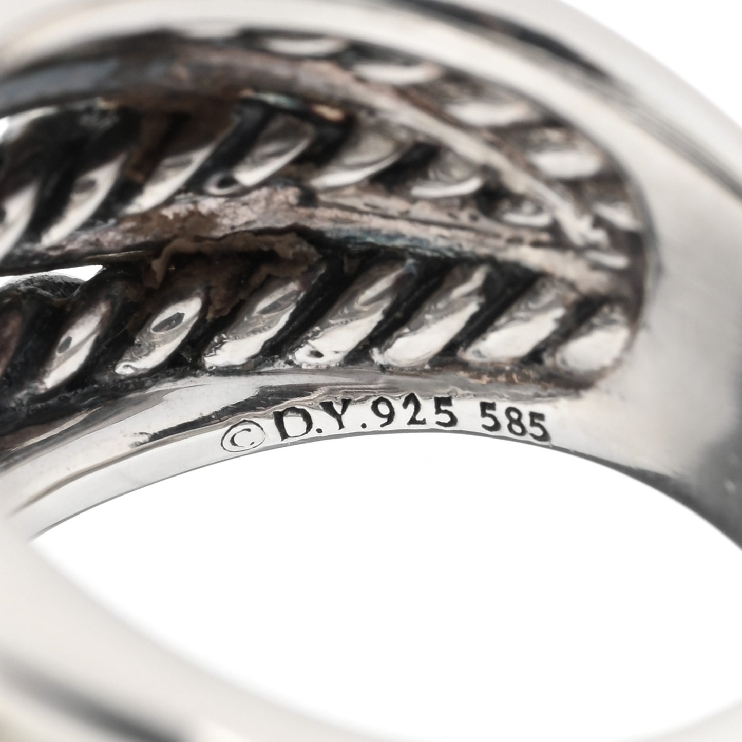 This is an authentic DAVID YURMAN Sterling Silver 14K Yellow Gold Wide Crossover Ring 57 8. The ring is crafted of sterling silver and 14 karat yellow gold, and features polished and cable-style bands in a crossover design.Follow this item for alerts. David Yurman is a registered trademark of David Yurman. FASHIONPHILE is not affiliated with David Yurman.