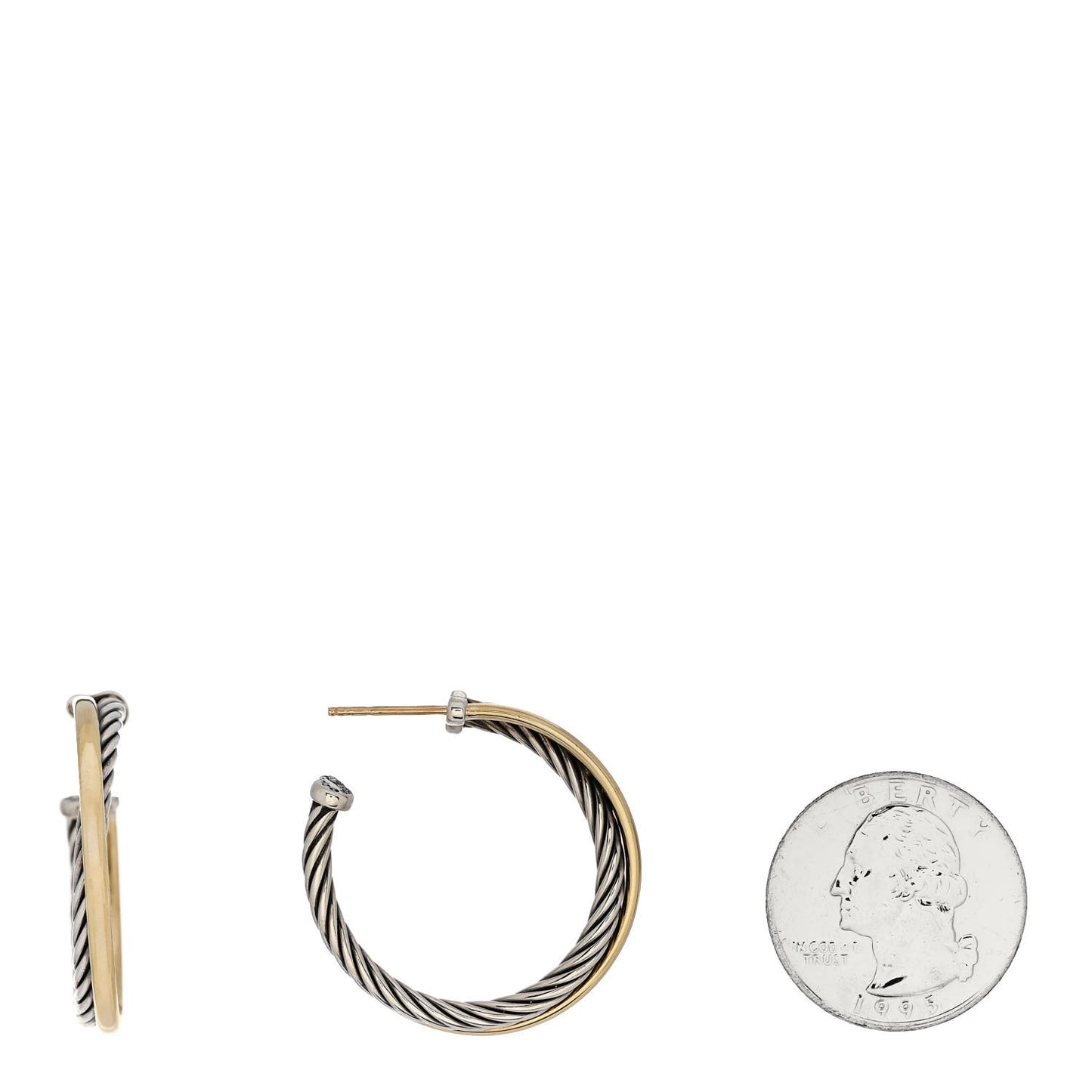 This is an authentic pair of DAVID YURMAN Sterling Silver 18K Yellow Gold 31mm Crossover Cable Hoop Earrings. The earrings are crafted of sterling silver and 18-karat yellow gold, and feature a twisted cable-style hoop with a polished yellow gold accent.Follow this item for alerts. David Yurman is a registered trademark of David Yurman. FASHIONPHILE is not affiliated with David Yurman.