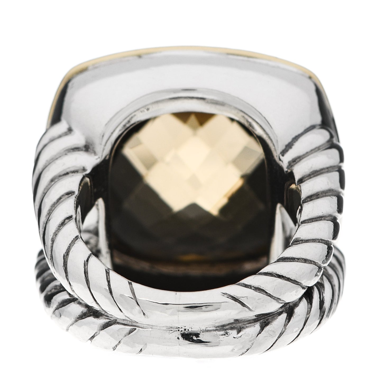This is an authentic DAVID YURMAN Sterling Silver 18K Yellow Gold Citrine 17mm Albion Ring size 49 or 5. The ring is crafted of sterling silver and 18 karat yellow gold, and features a faceted 17mm citrine stone bezel-set atop a wide tapered band.Follow this item for alerts. David Yurman is a registered trademark of David Yurman. FASHIONPHILE is not affiliated with David Yurman.