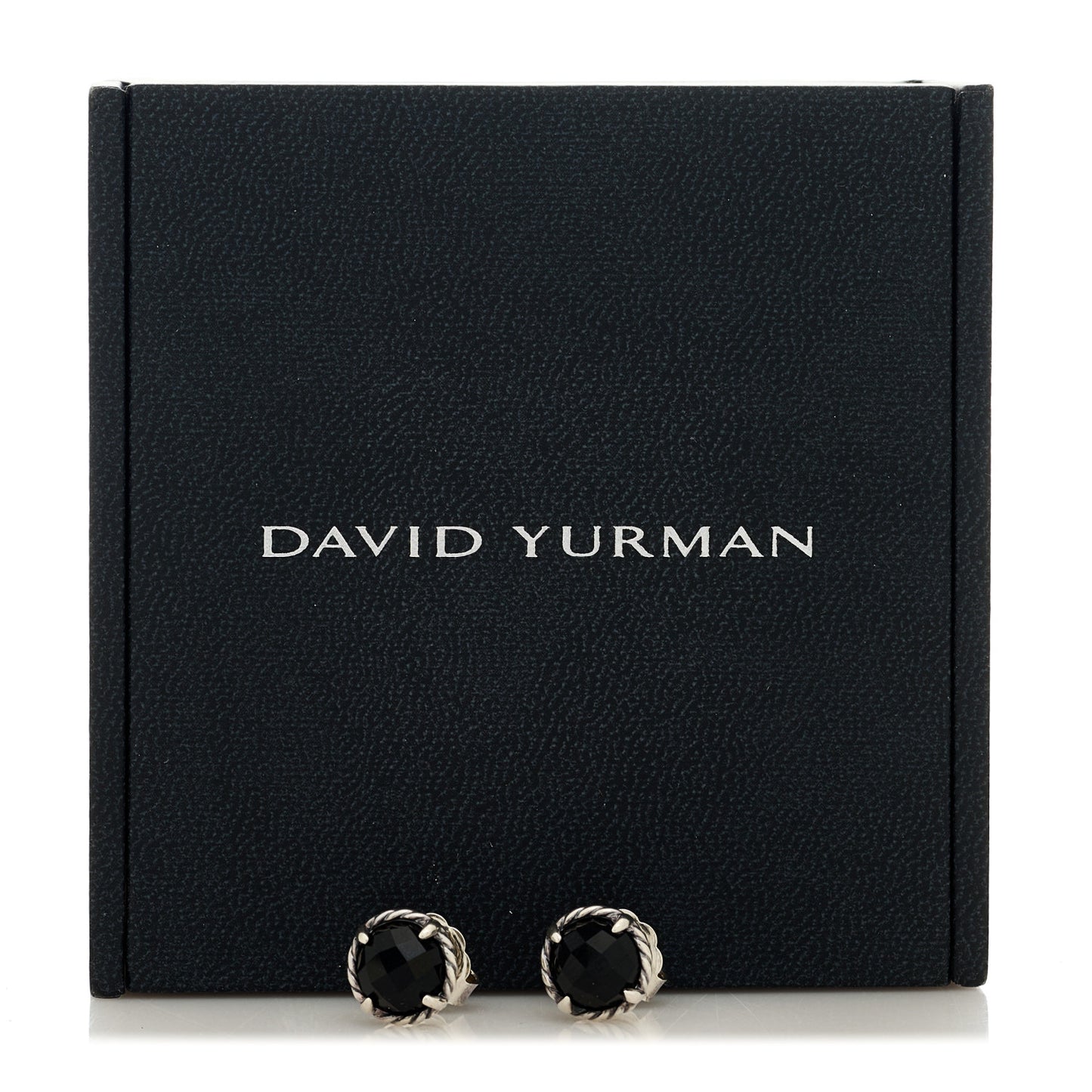 This is an authentic pair of DAVID YURMAN Sterling Silver Black Onyx 8mm Chatelaine Earrings. The earrings are crafted of sterling silver and feature 8mm faceted black onyx stones in a cable-style bezel setting along with 14 karat gold posts.Follow this item for alerts. David Yurman is a registered trademark of David Yurman. FASHIONPHILE is not affiliated with David Yurman.