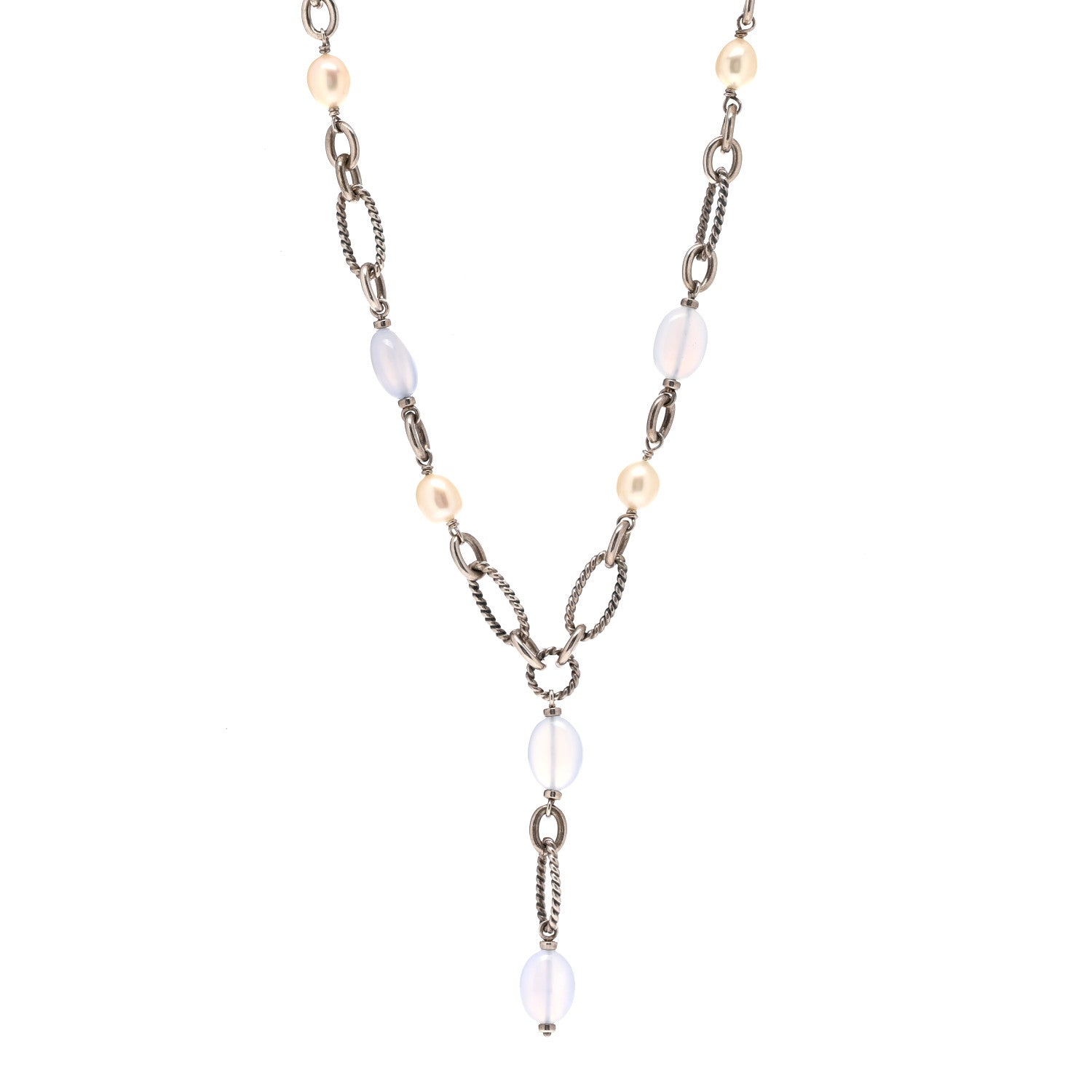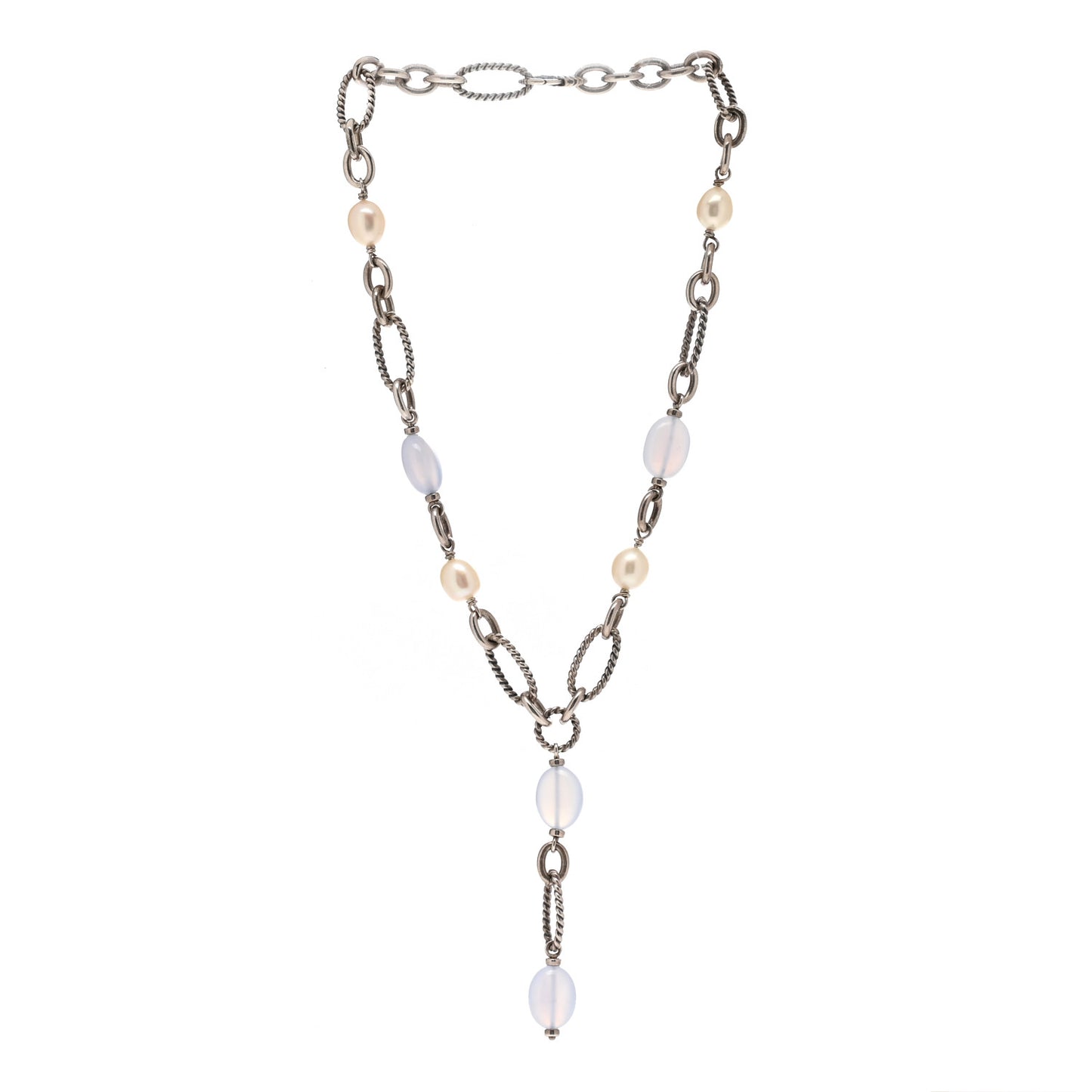 David Yurman/ Jewelry/ Necklaces /David Yurman Sterling Silver Chalcedony Pearl Lariat Necklace