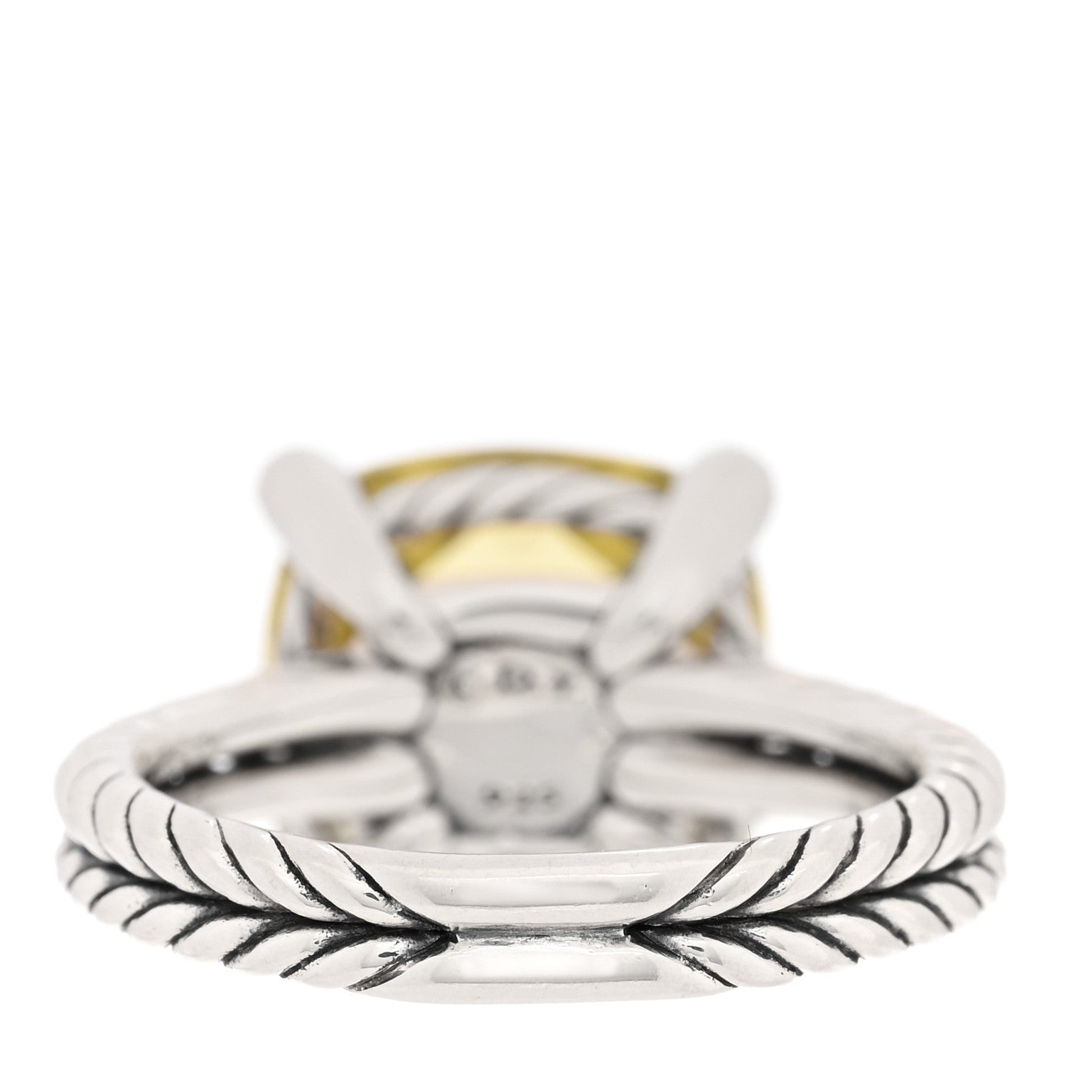 This is an authentic DAVID YURMAN Sterling Silver Diamond Lemon Citrine 11mm Chatelaine Ring 49 4.75 This ring is crafted of a sterling silver cable style band that holds a faceted lemon citrine stone set with pave diamond accented prongs approximately 0.06 total carat weight.Follow this item for alerts. David Yurman is a registered trademark of David Yurman. FASHIONPHILE is not affiliated with David Yurman.
