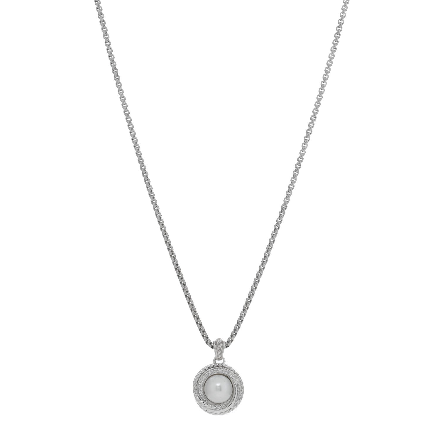 Sterling Silver Diamond Pearl 8mm Crossover Pendant Necklace