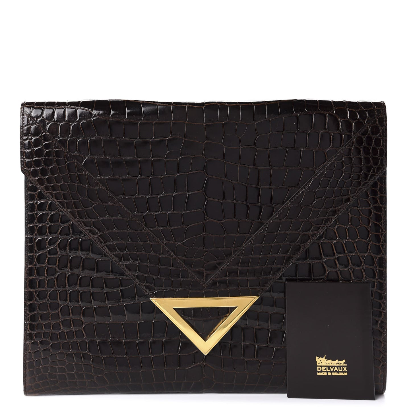 Delvaux/ Bags/ Handbags /Delvaux Crocodile Envelope Clutch Brown