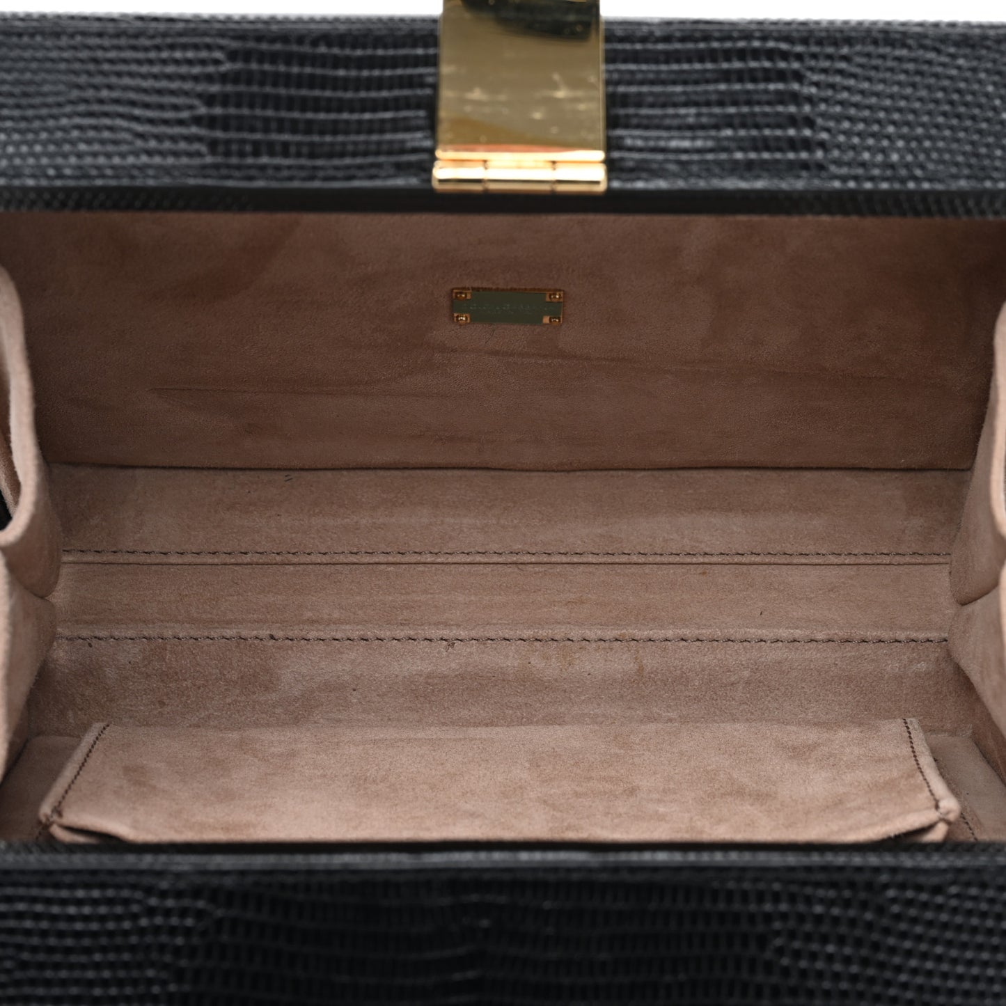 Dolce & Gabbana/ Bags/ Shoulder Bags /Dolce & Gabbana Calfskin Lizard Embossed Padlock Box Shoulder Bag Black