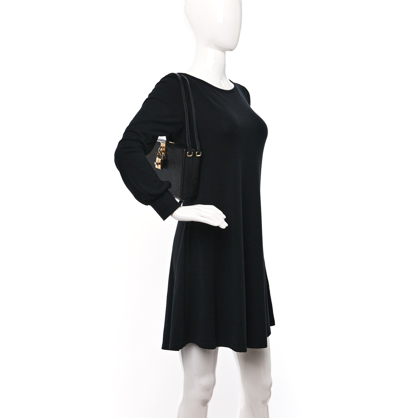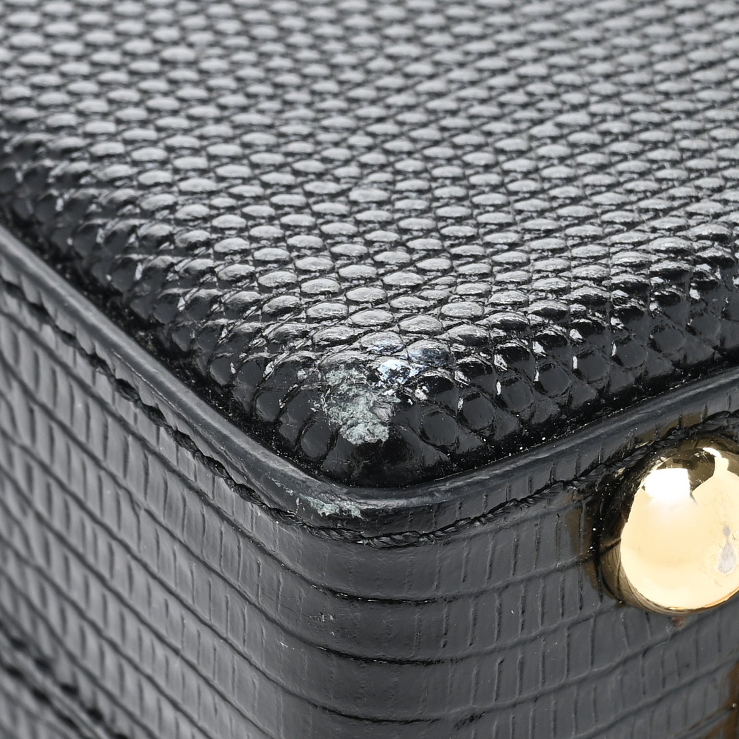 Calfskin Lizard Embossed Padlock Box Shoulder Bag Black