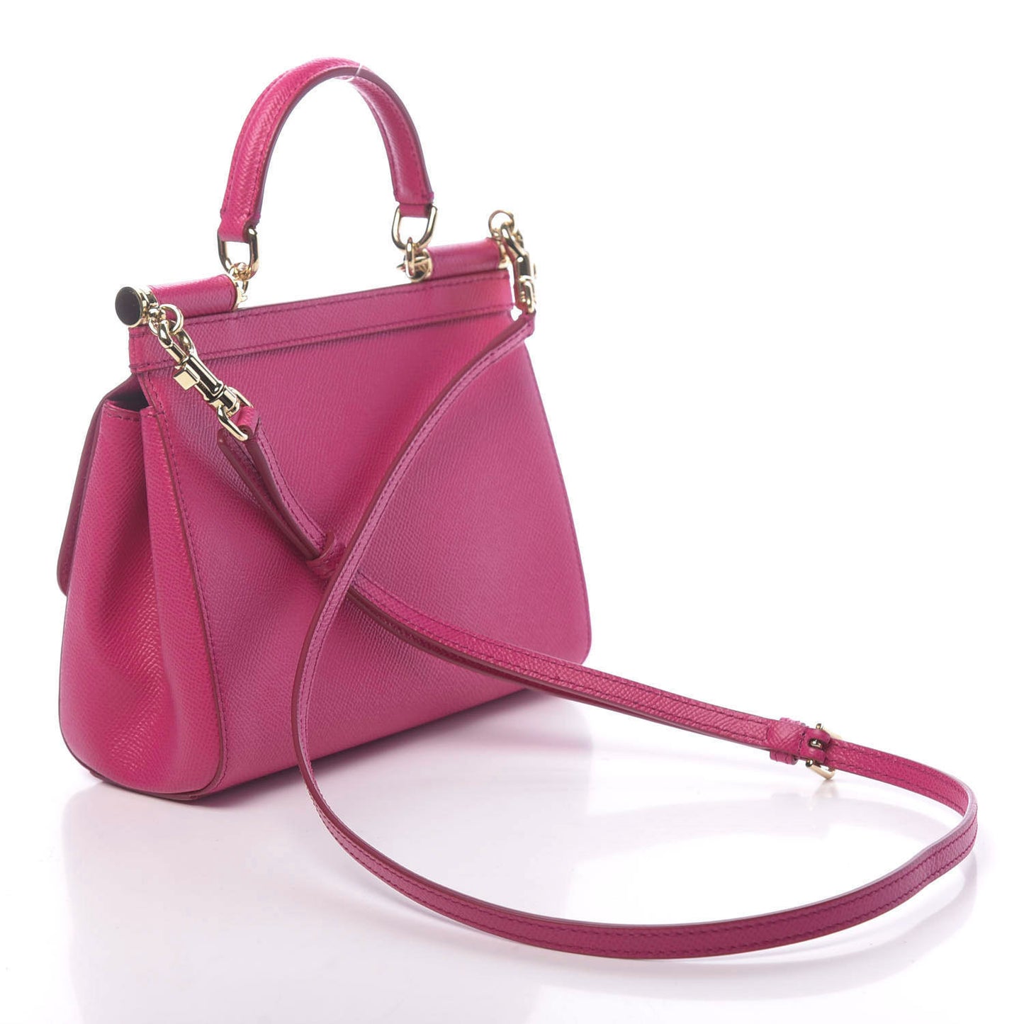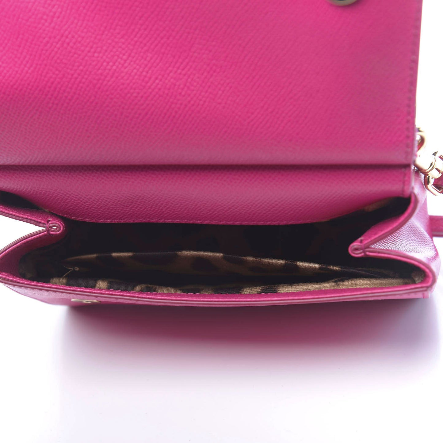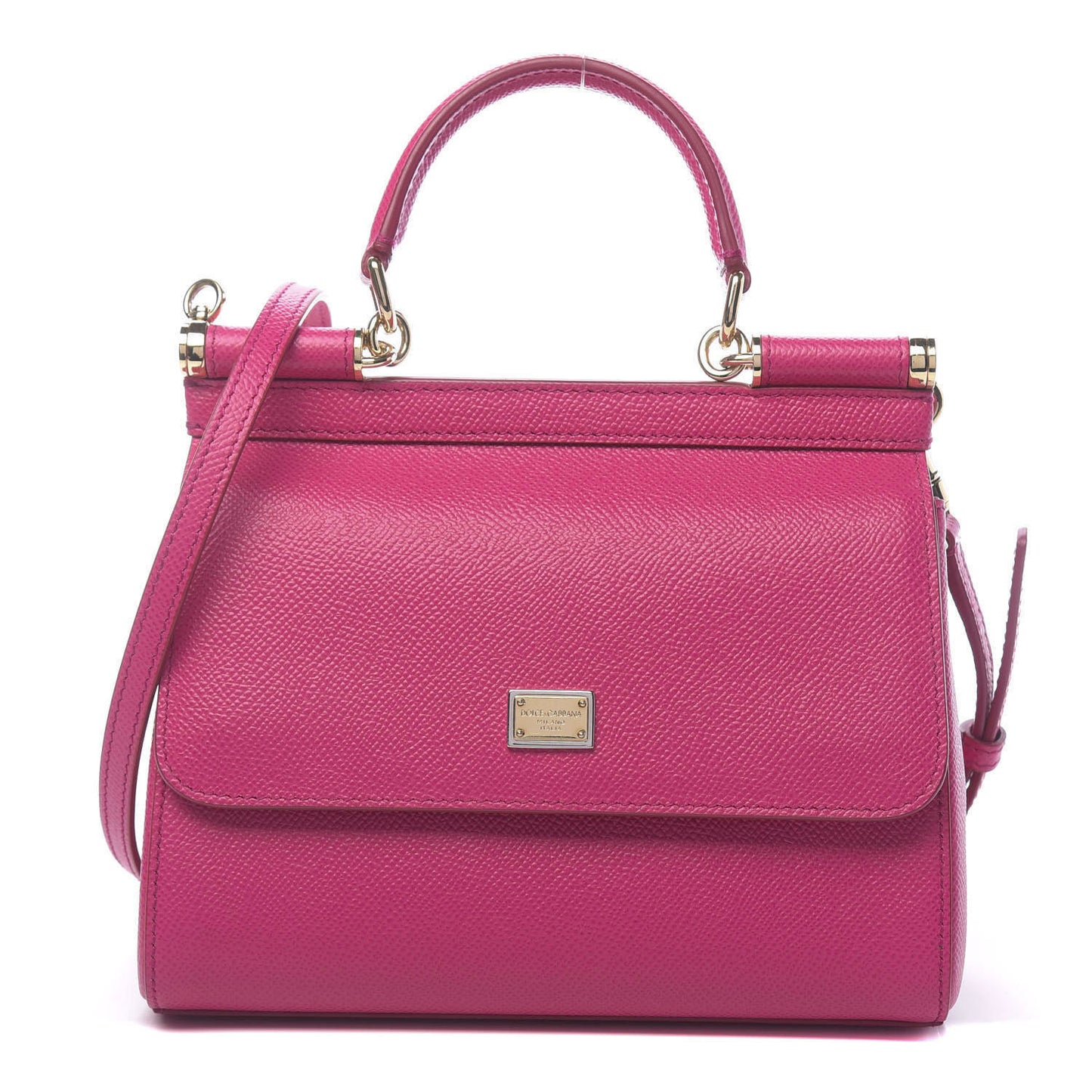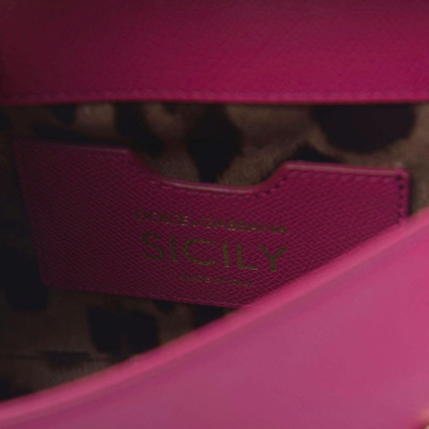 This is an authentic DOLCE & GABBANA Dauphine Small Miss Sicily Satchel in Rosa Geranio. This chic satchel is crafted of luxurious pink textured calfskin leather. The bag features a sturdy leather top handle with brass links, leather anchors, and optional shoulder strap. The classic facing flap opens to a leopard print fabric interior with a patch pocket. This chic bag is great for day or evening with the forward fashion of Dolce & Gabbana!Follow this item for alerts. Dolce & Gabbana is a registered trademark of Dolce & Gabbana. FASHIONPHILE is not affiliated with Dolce & Gabbana.