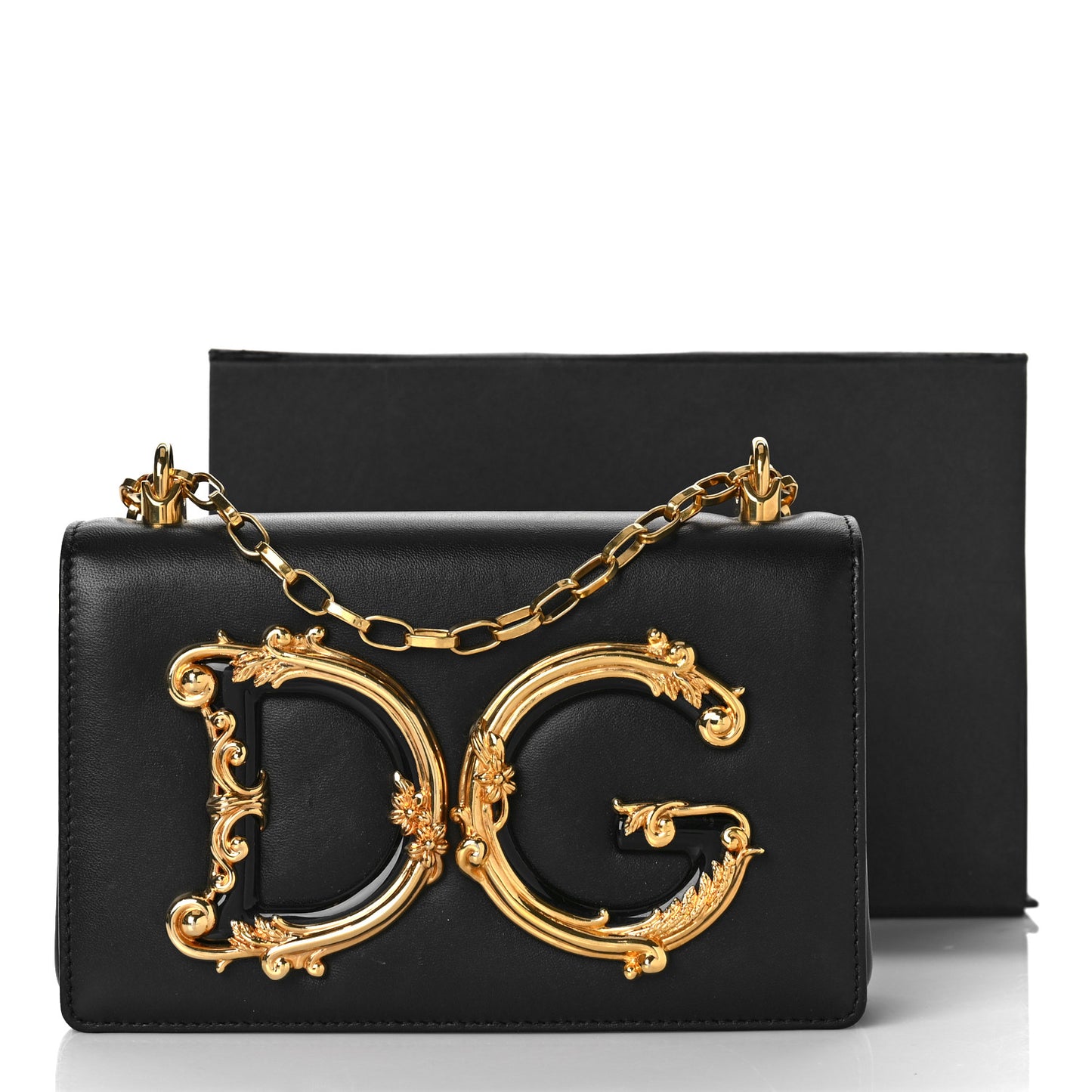 This is an authentic DOLCE & GABBANA Nappa DG Girls Shoulder Bag in Black. This petite bag is crafted of luxuriously smooth nappa leather in black. The bag features a leather top handle, an optional shoulder strap, and gold hardware. The zipper opens to a leather interior with a flat pocket.Follow this item for alerts. Dolce & Gabbana is a registered trademark of Dolce & Gabbana. FASHIONPHILE is not affiliated with Dolce & Gabbana.