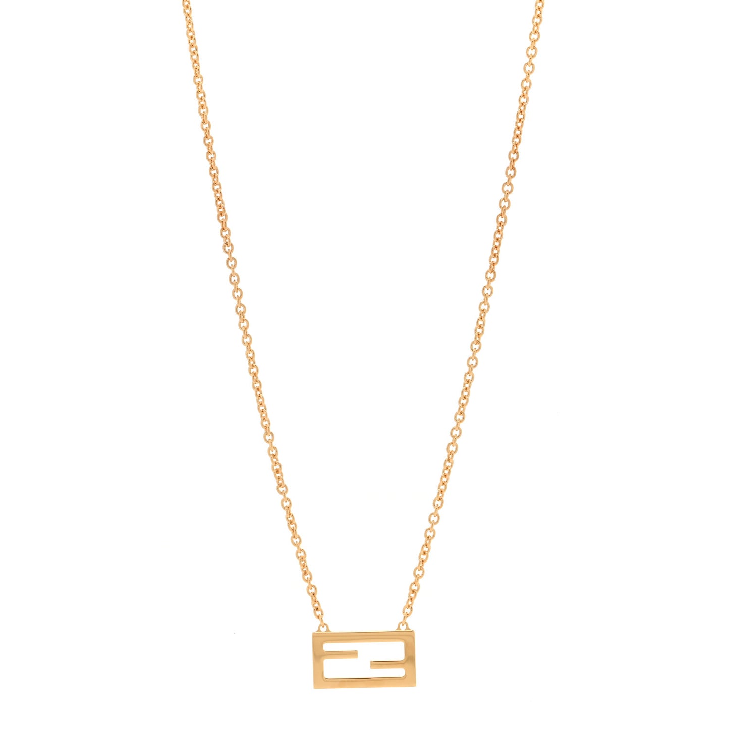 This is an authentic FENDI Metal Baguette Necklace in Gold. This stylish gold tone necklace features a polished gold Fendi baguette clasp pendant.Follow this item for alerts. Fendi is a registered trademark of Fendi. FASHIONPHILE is not affiliated with Fendi.