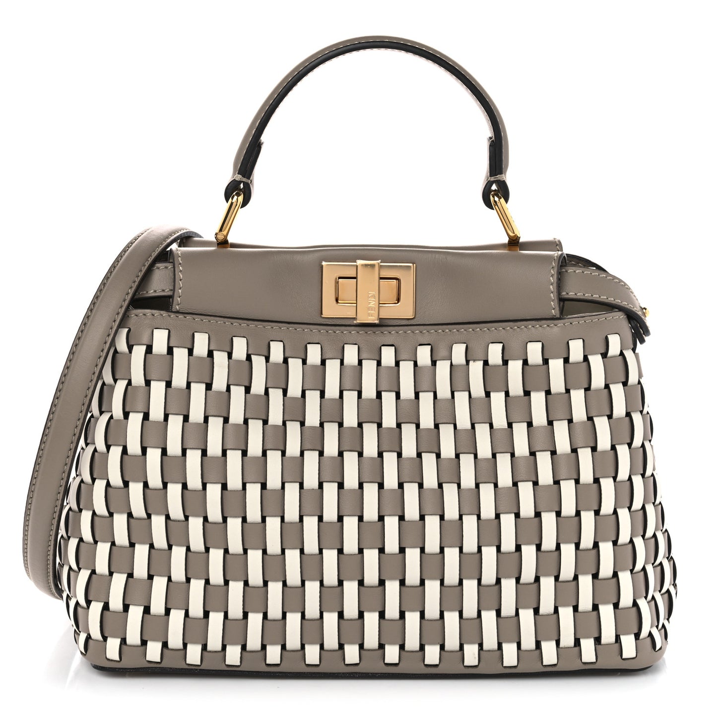 Fendi/ Bags/ Handbags /Fendi Calfskin Woven Mini Peekaboo Iconic Satchel Tortora