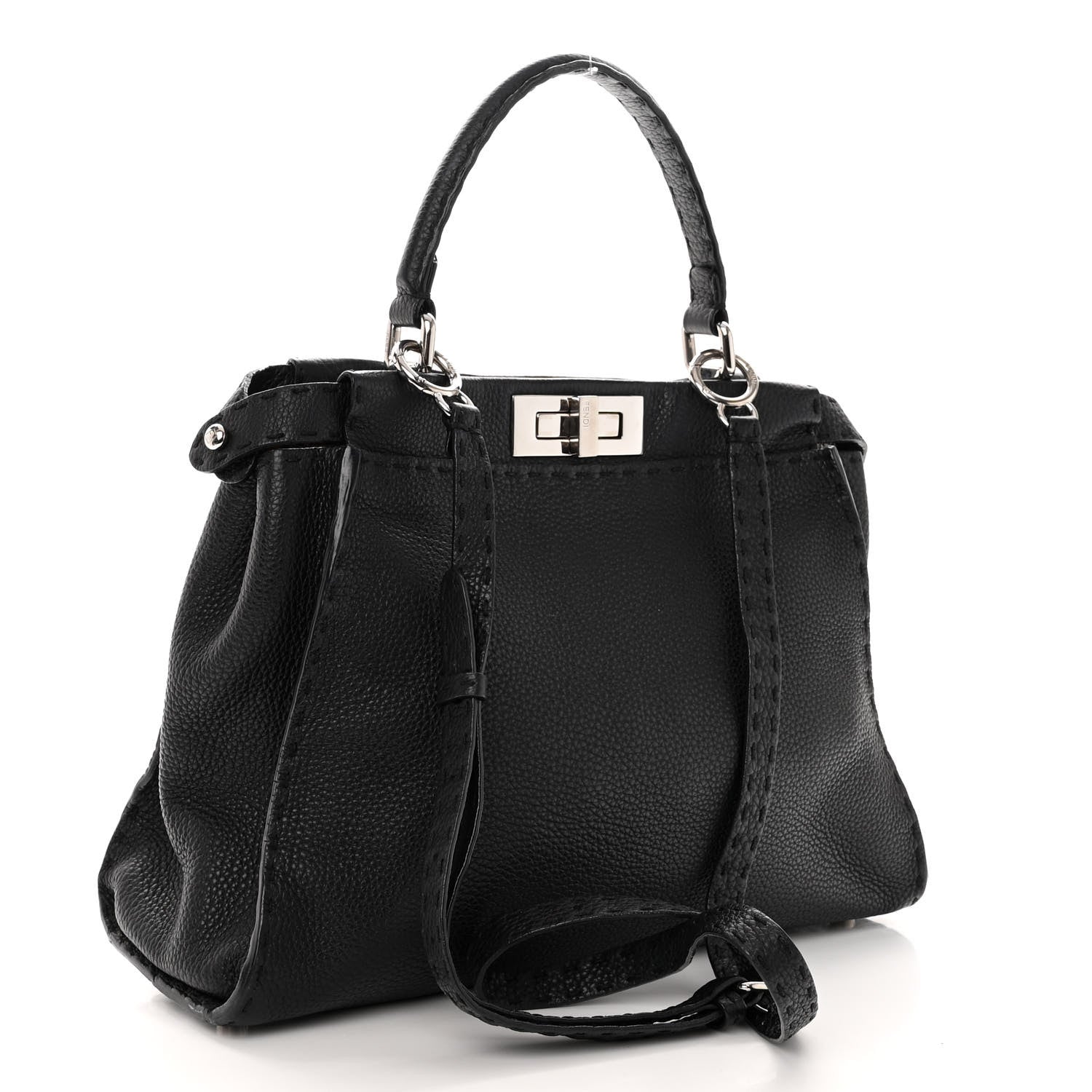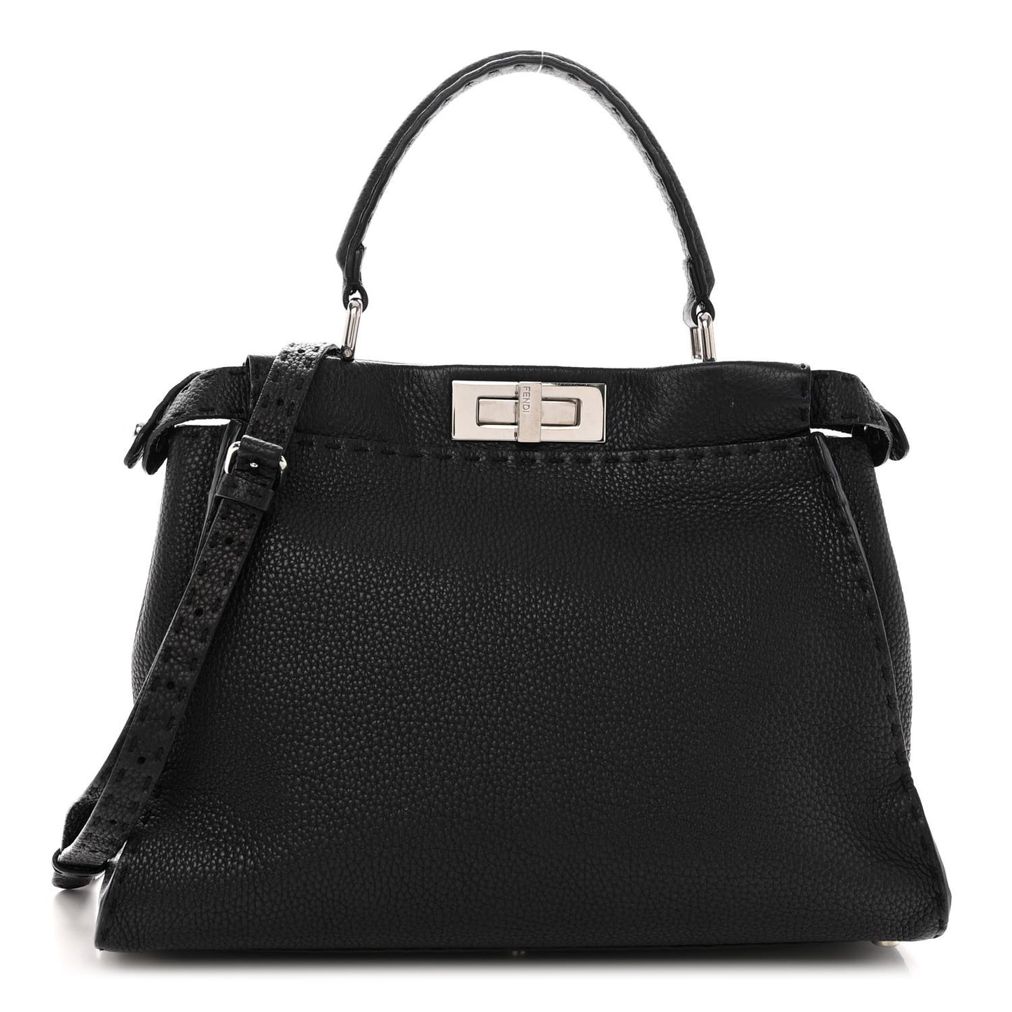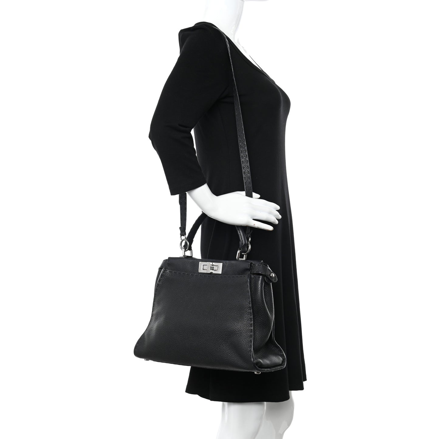 Fendi/ Bags/ Shoulder Bags /Fendi Cuoio Romano Selleria Bi-Color Medium Peekaboo Iconic Satchel Black Mou