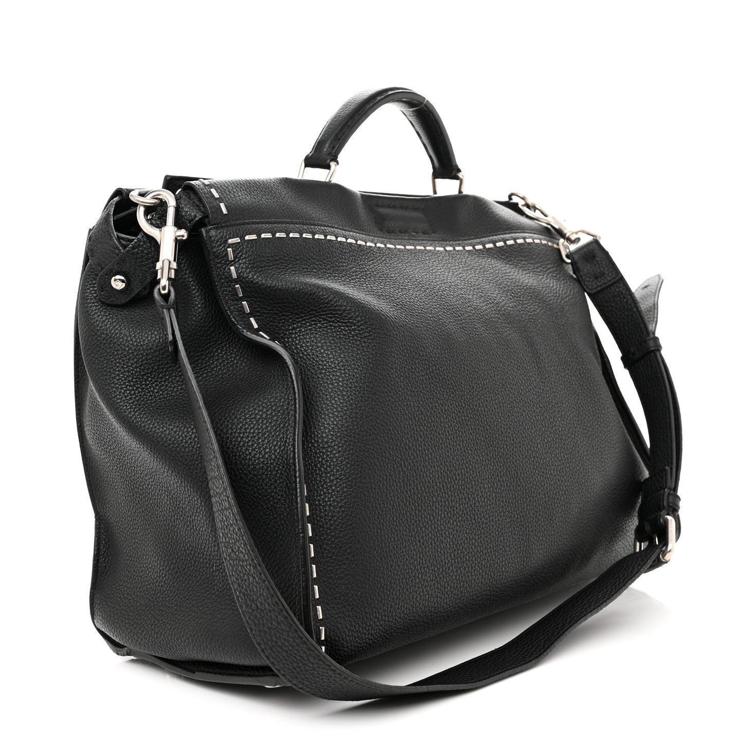 Fendi/ Bags/ Shoulder Bags /Fendi Cuoio Romano Selleria Metal Stitch Large Mens Peekaboo Iconic Essential Satchel Black